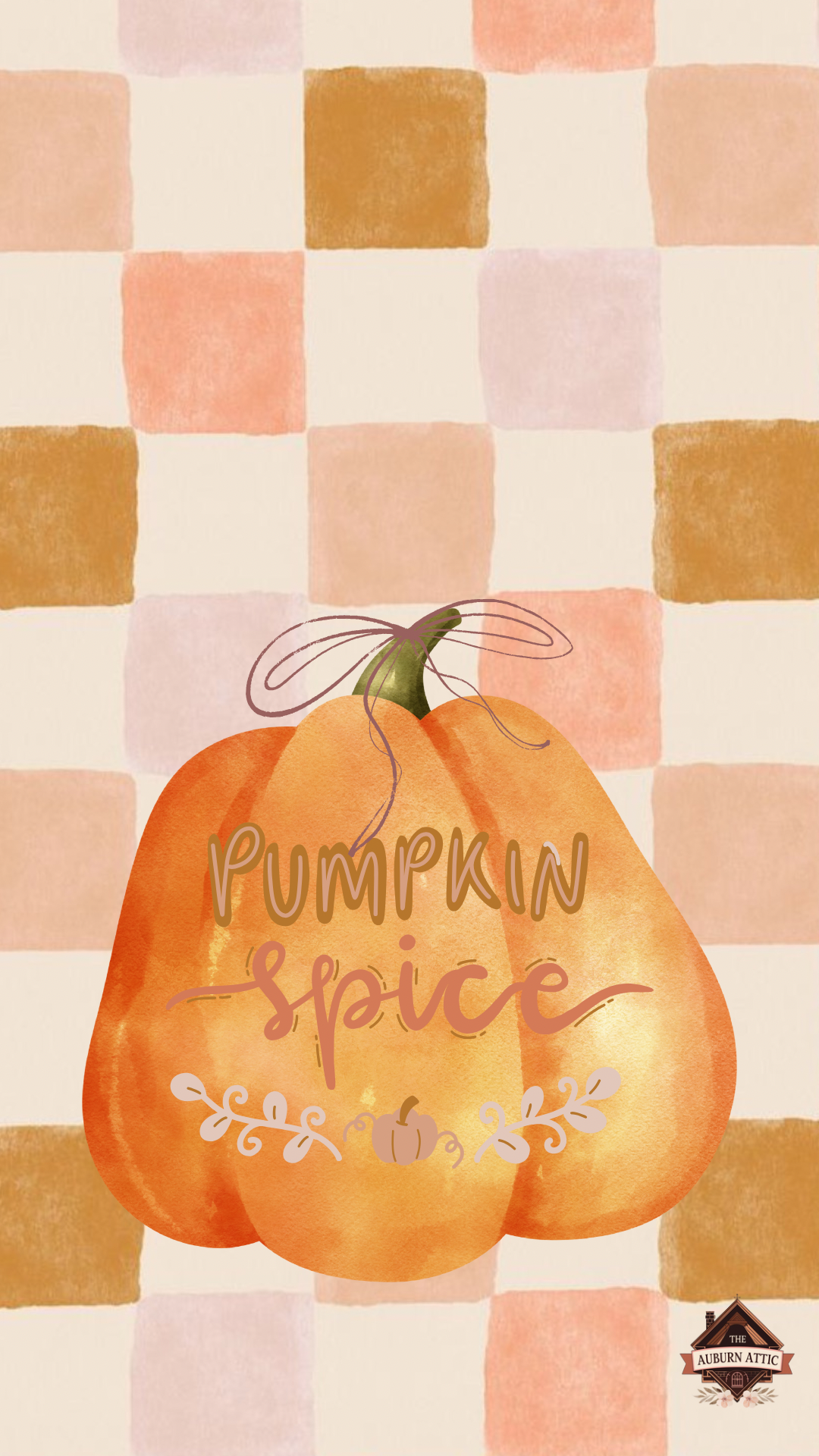 Greet the fall with this pastel, checkered Pumpkin Spice Lock Screen and Wallpaper for your phone. So soft and cozy 🎃🎀