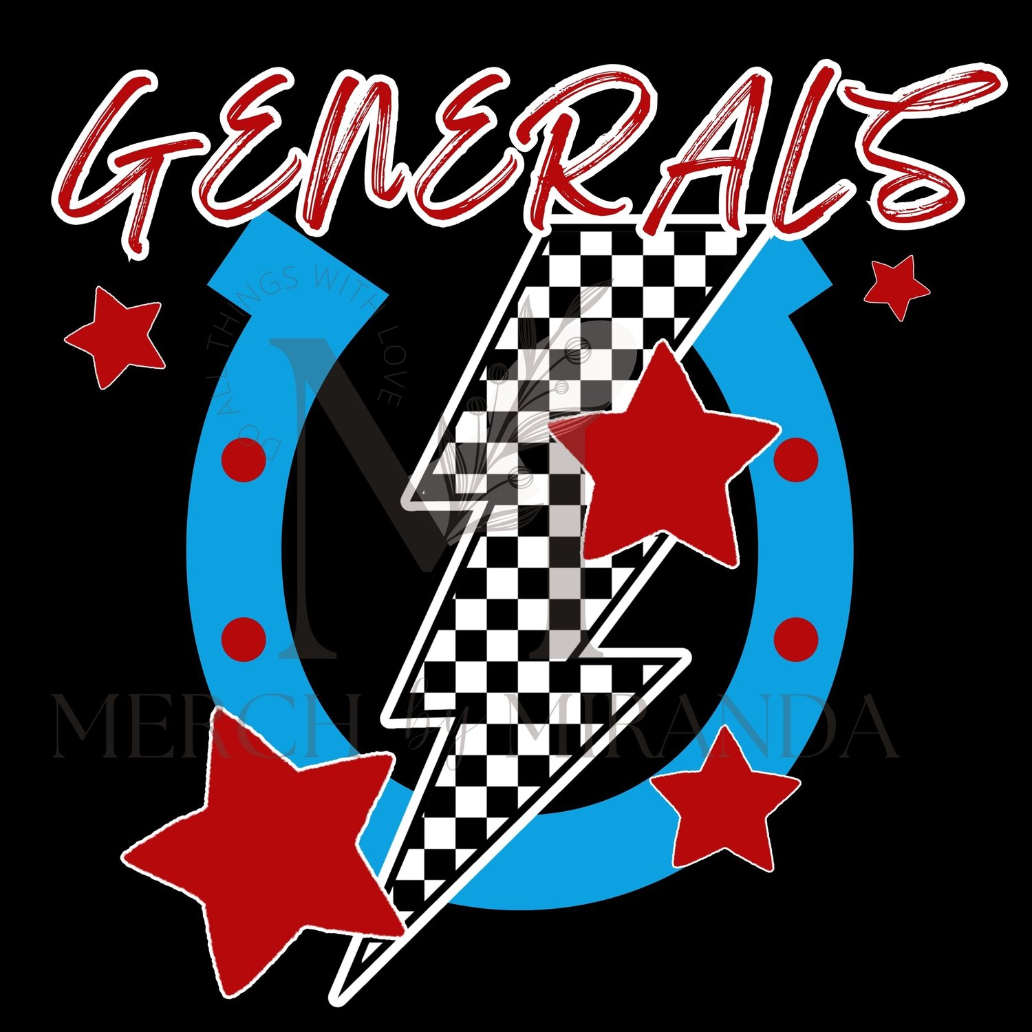 Generals Mascot Blue | Sublimation Design | Digital Download | School Spirit Shirt PNG | DTF Design | Lightning Bolt-Checkered with Stars - General