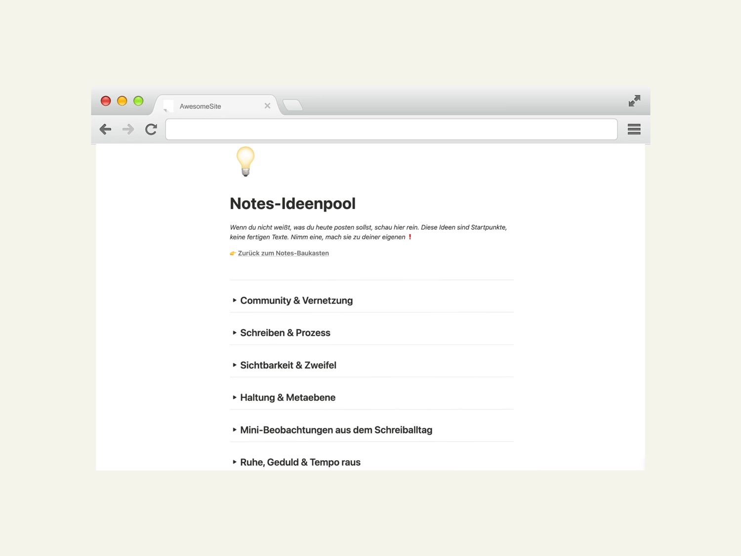 🎁 Bonus: 80+ fertige Notes-Ideen Für Tage, an denen du einfach loslegen willst, ohne selbst nachzudenken. Aussuchen, anpassen, posten.
