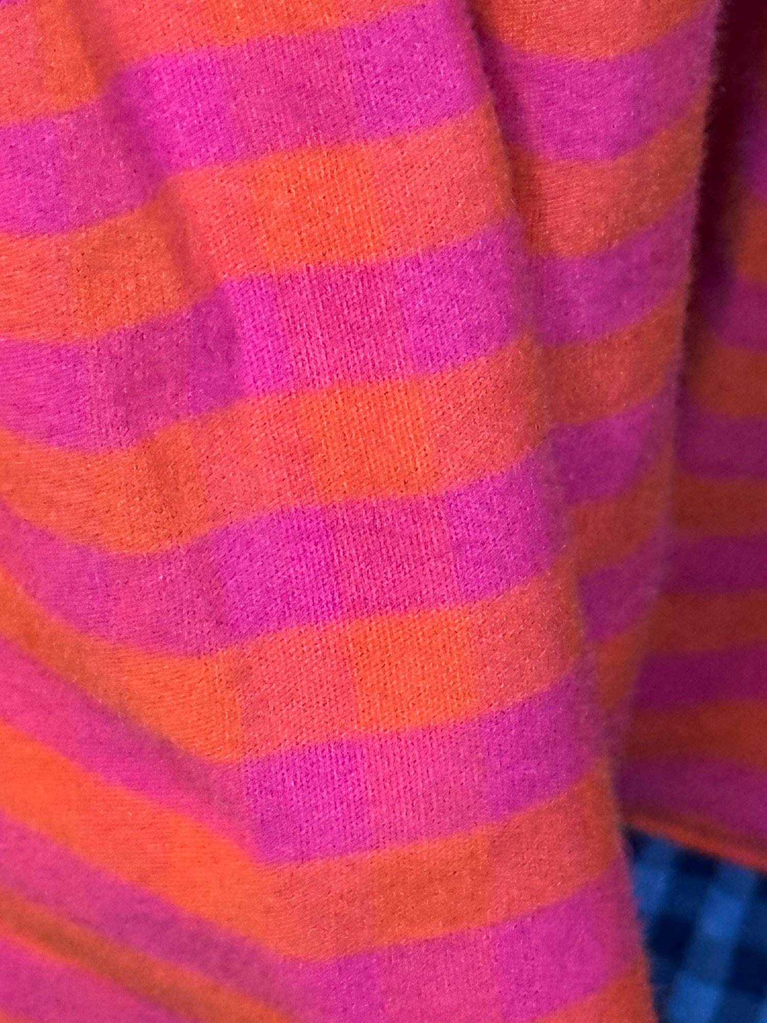 - Colors: Bright cobalt, coral-pink, royal blue gingham (Bright Winter palette)