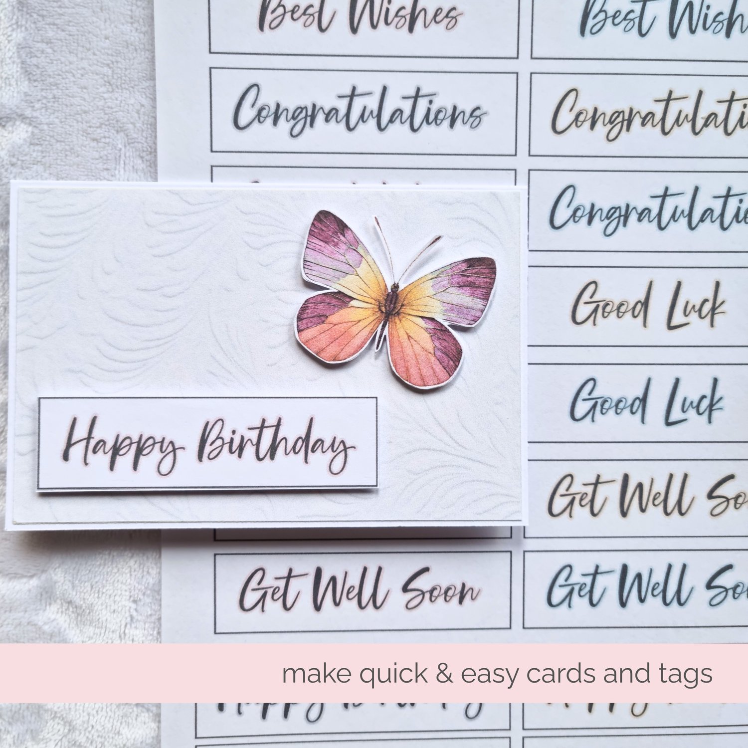 If you love crafting greeting cards but don’t have stamps, a Sizzix, or a Cricut to add fun messages, these printable sentiment embellishments are just what you need.