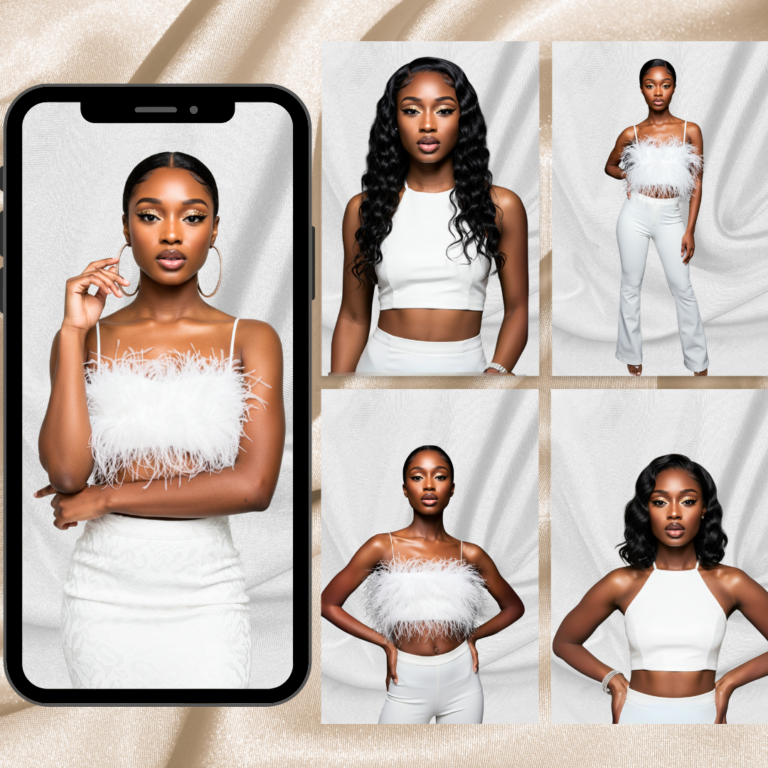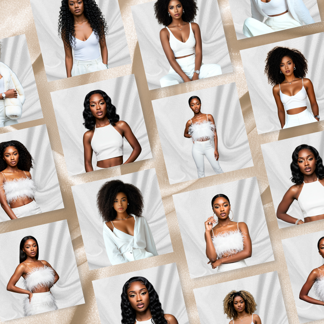 Elevate your designs with this exclusive collection of 18 luxury Fashion Nova-inspired models. Dressed in all-white, these stunning images exude elegance and sophistication, perfect for creating high-end, fashion-forward content.