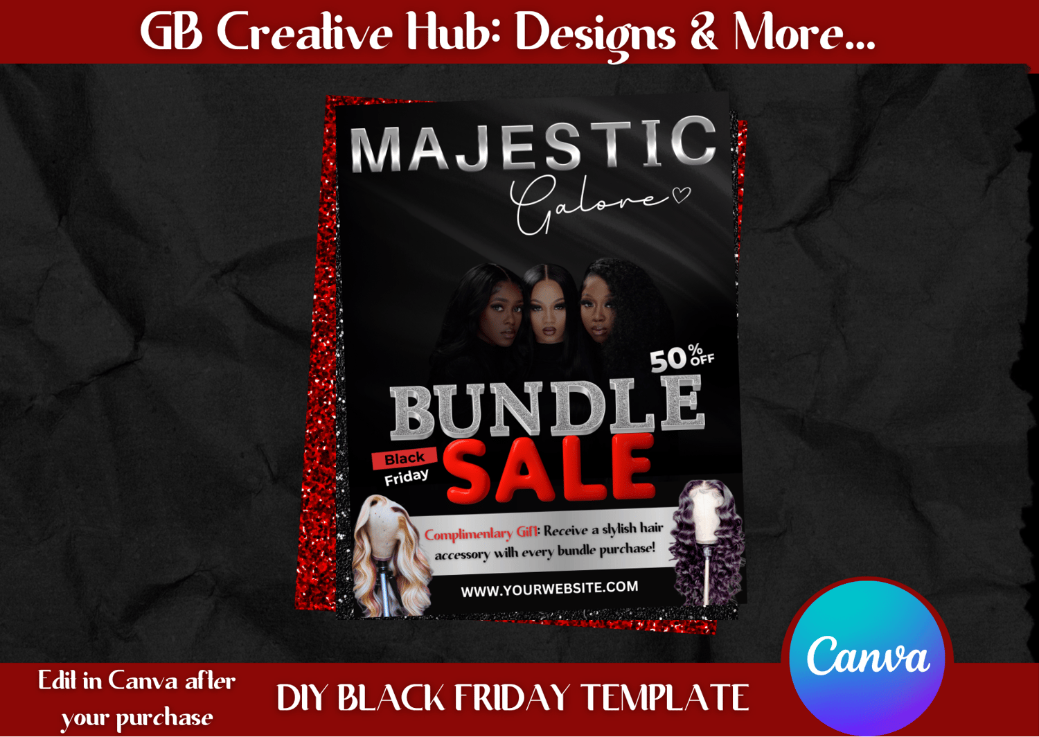 This product is a digital download of a customizable Black Friday Template, designed for easy editing in Canva. A Canva account (Free or Pro) is required to access and modify this template to suit your needs. Please note that this is a digital product; therefore, all sales are final, and no refunds will be issued.
