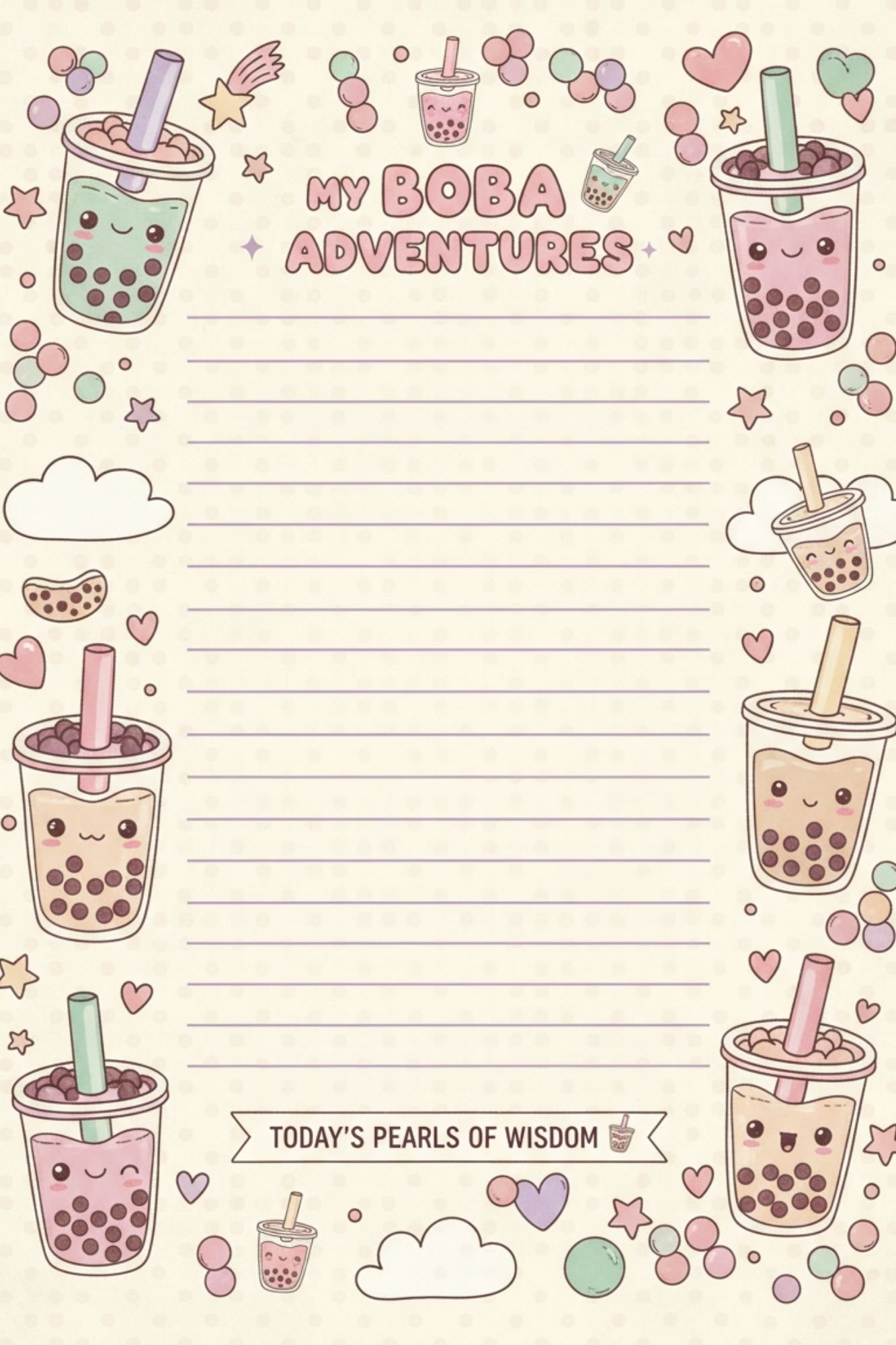 - Interior: Color bubble tea journal pages