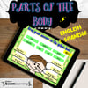 The student will drag the names of the body parts to label the pictures shown. This will help students associate their body parts with its name and be better at describing themselves and parts of their body and their uses. This deck is in English and Spanish for dual language learners.