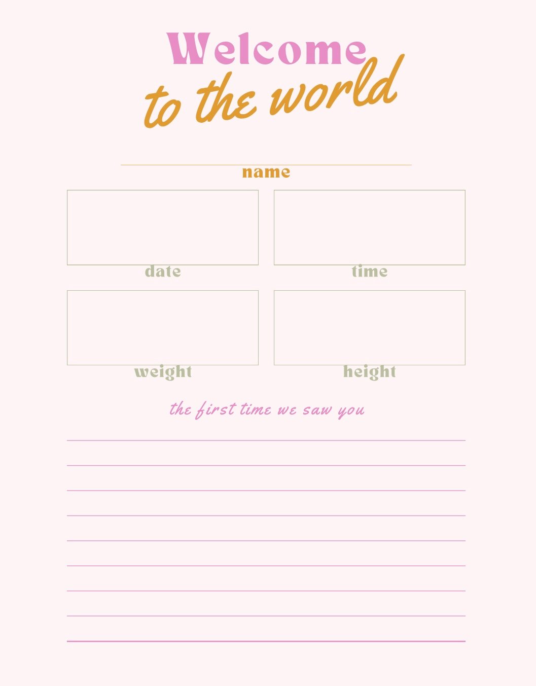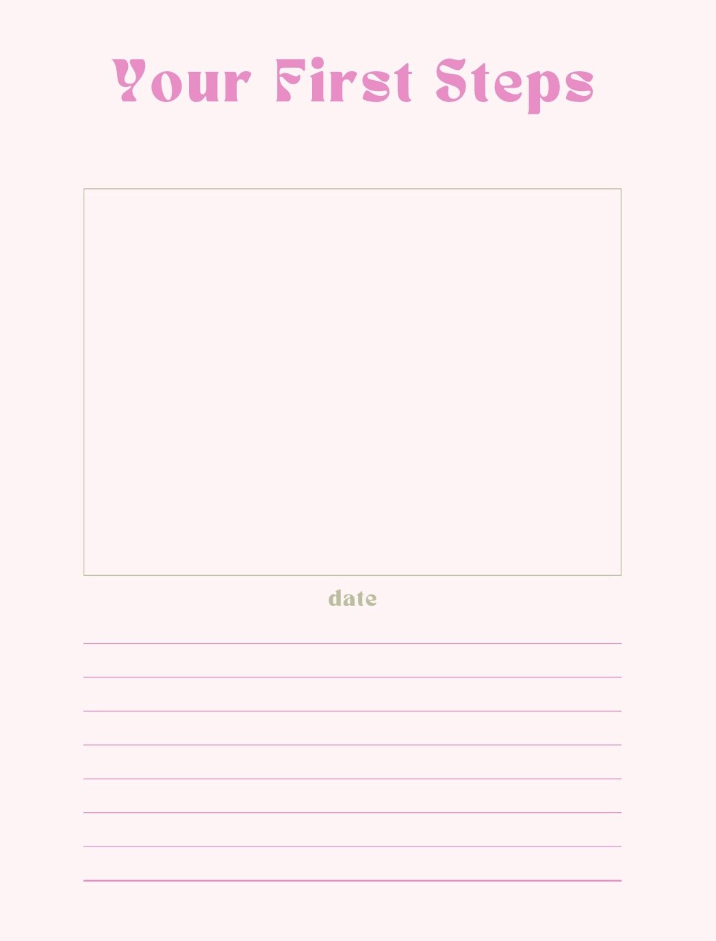 A baby journal for your little girl filled with places to put pictures and write about their first year of life.