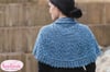 A beautiful lace pi shawl with a unique stitch pattern based on a secret code for the word “Knotions” and a knit-on border.