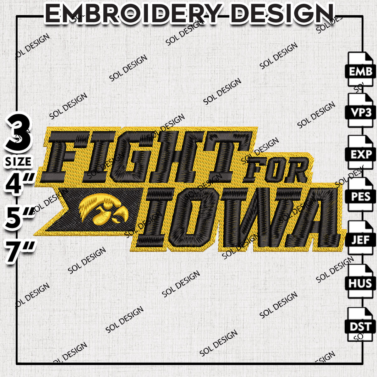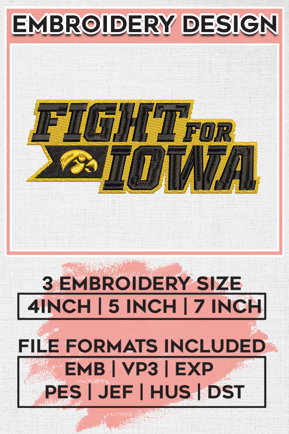 Fight For Iowa NCAA College Football Team Logo Embroidery Files, NCAA Iowa Hawkeyes Team Embroidery, NCAA College Football Teams, Iowa Team Emroidery, 3 sizes, Machine embroidery designs, Digital Down