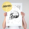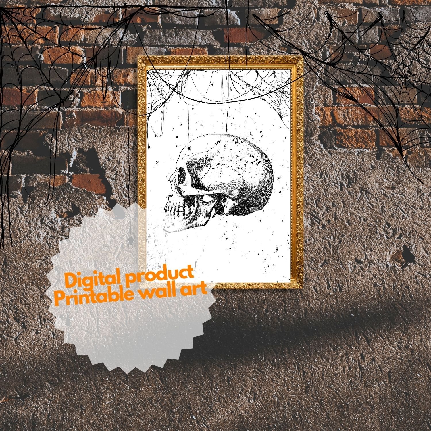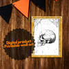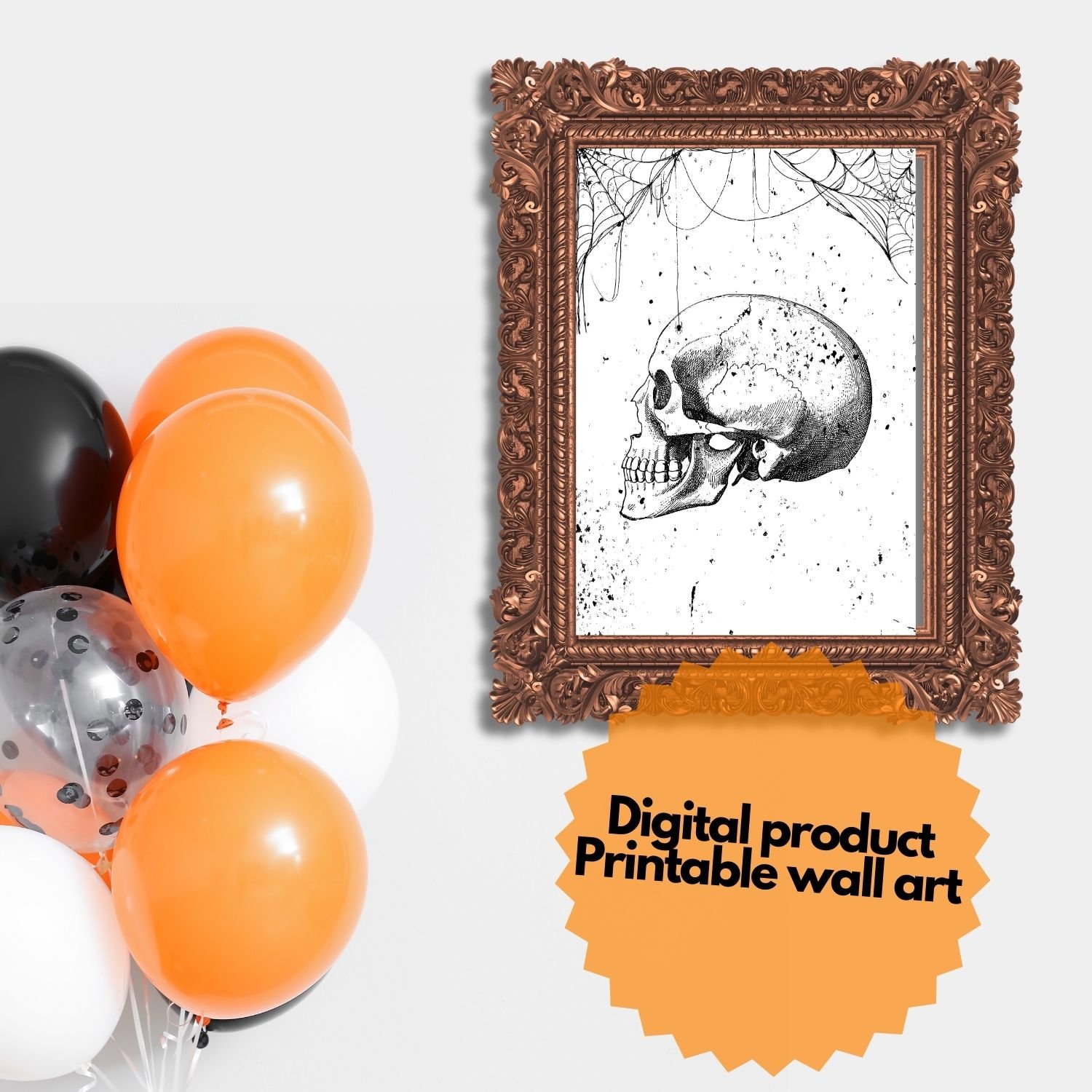 A digital file for printing; Scary skull halloween decoration poster. Human skull printable wallart, invitation card and wallpaper for phones