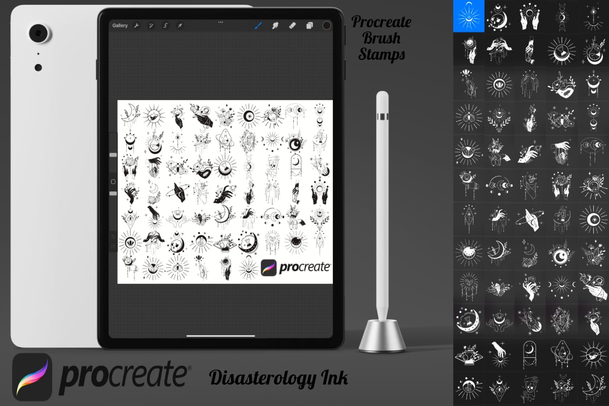 Tattoos Set 8 Procreate Brush Stamps, 60 Flash Tattoos