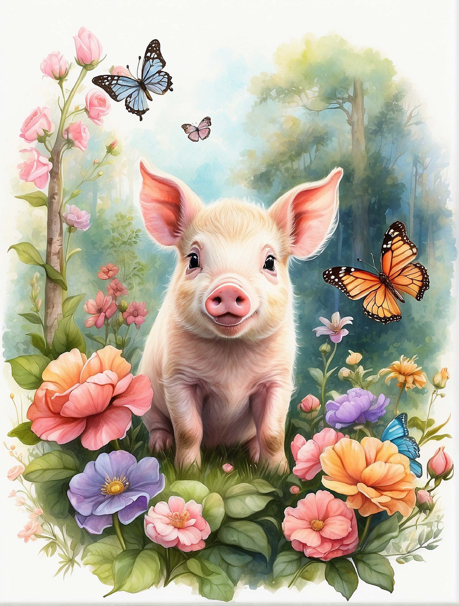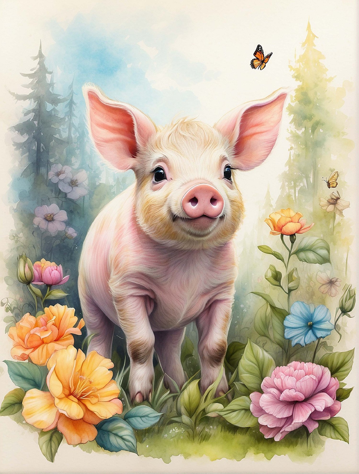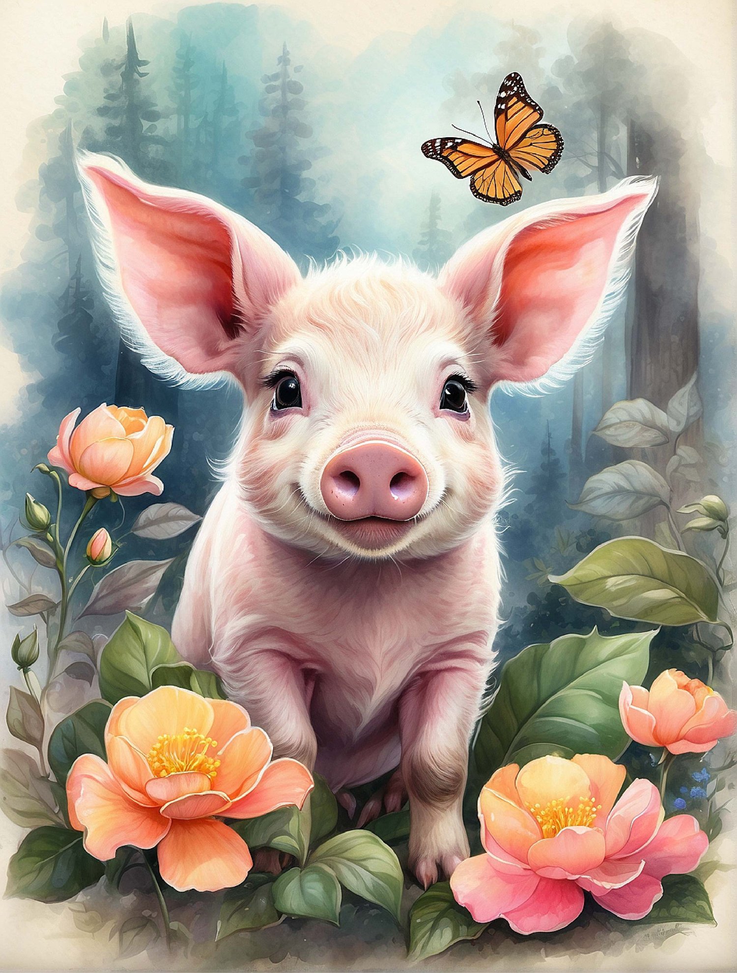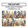 Bring charm and whimsy to your projects with the "Pig Blooming Paradise Clip Art Bundle." This delightful set includes 8 high-quality JPG images featuring the adorable Pig surrounded by lush watercolor flowers and playful butterflies. Perfect for scrapbooking, card-making, invitations, or adding a serene touch to digital designs. Please note that images have a white background and not a transparent background.