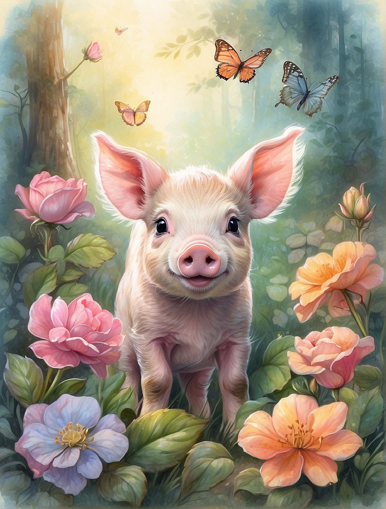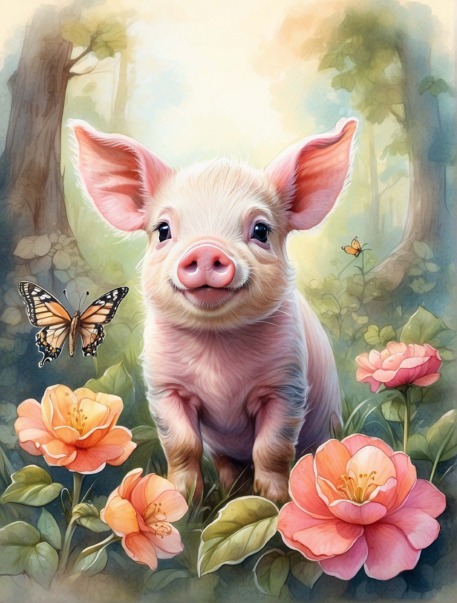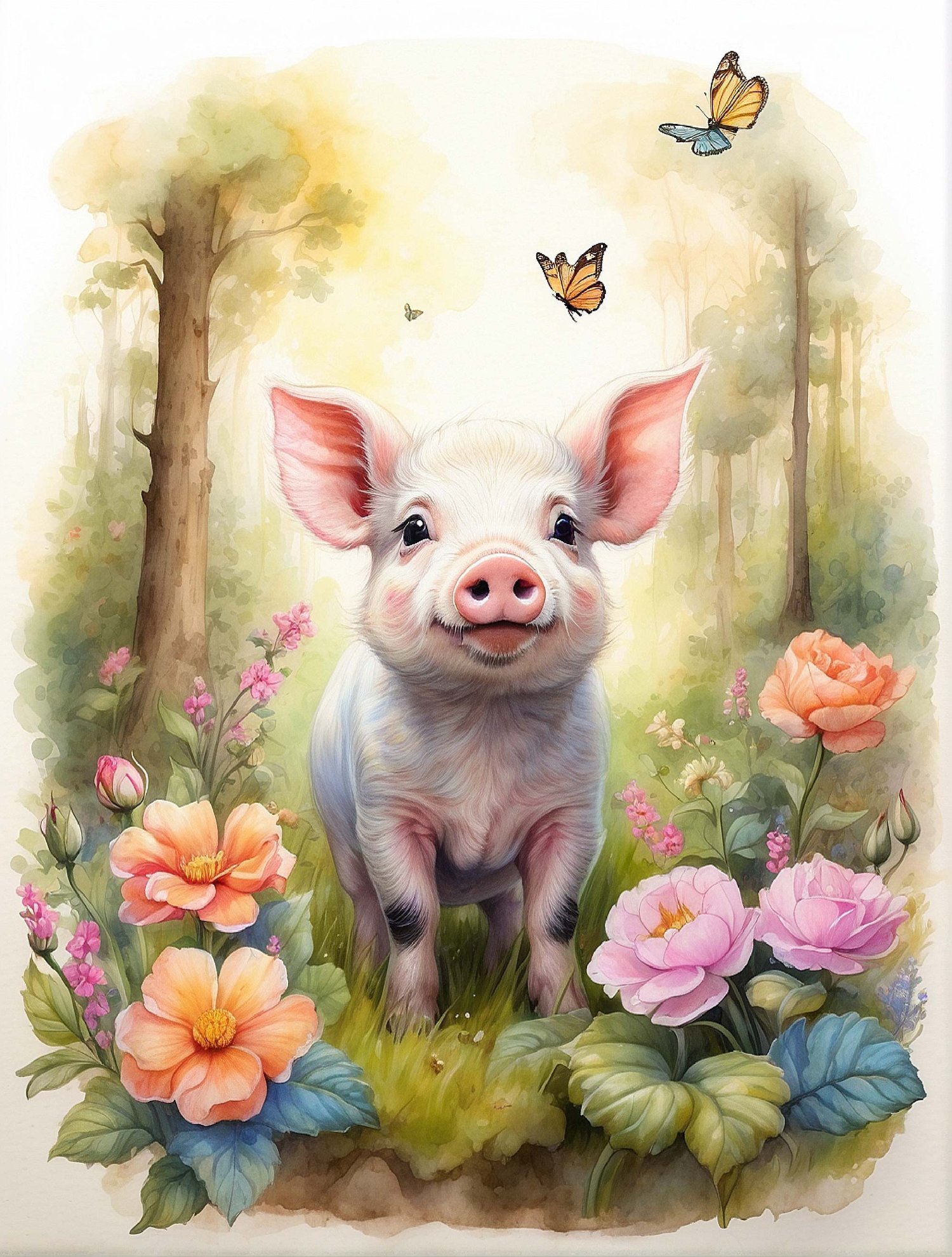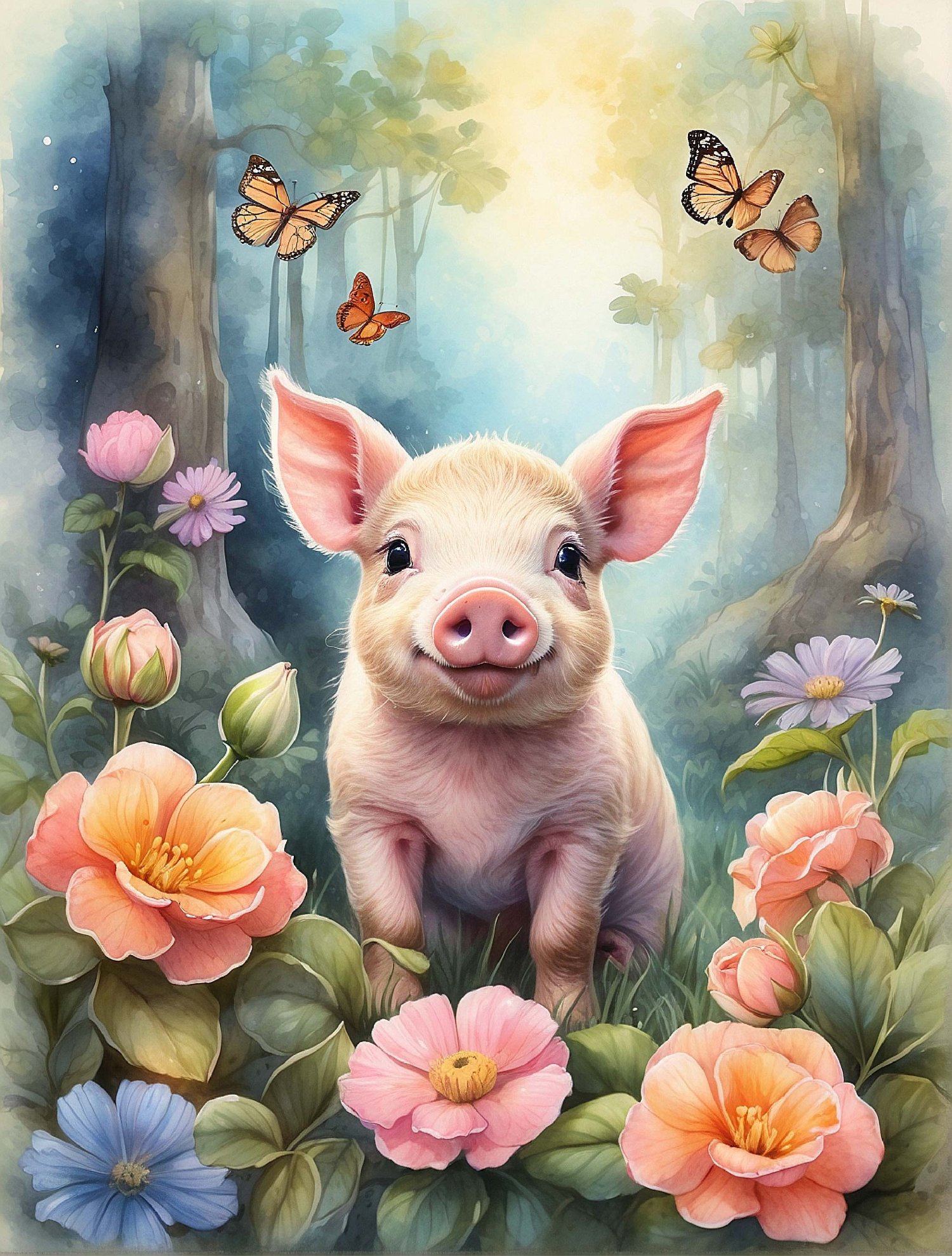 Bring charm and whimsy to your projects with the "Pig Blooming Paradise Clip Art Bundle." This delightful set includes 8 high-quality JPG images featuring the adorable Pig surrounded by lush watercolor flowers and playful butterflies. Perfect for scrapbooking, card-making, invitations, or adding a serene touch to digital designs. Please note that images have a white background and not a transparent background.