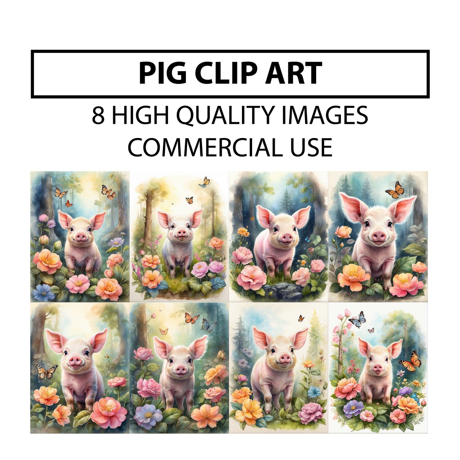 Pig Clip Art Designs - 8 High-Quality JPGs Bundle, Watercolor Digital Prints, Wall Art, Commercial Use