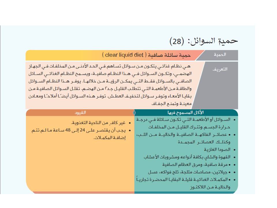 الدليل التغذوي لمرضى الانسدادات المعوية - نسخة مبسطة للمرضى