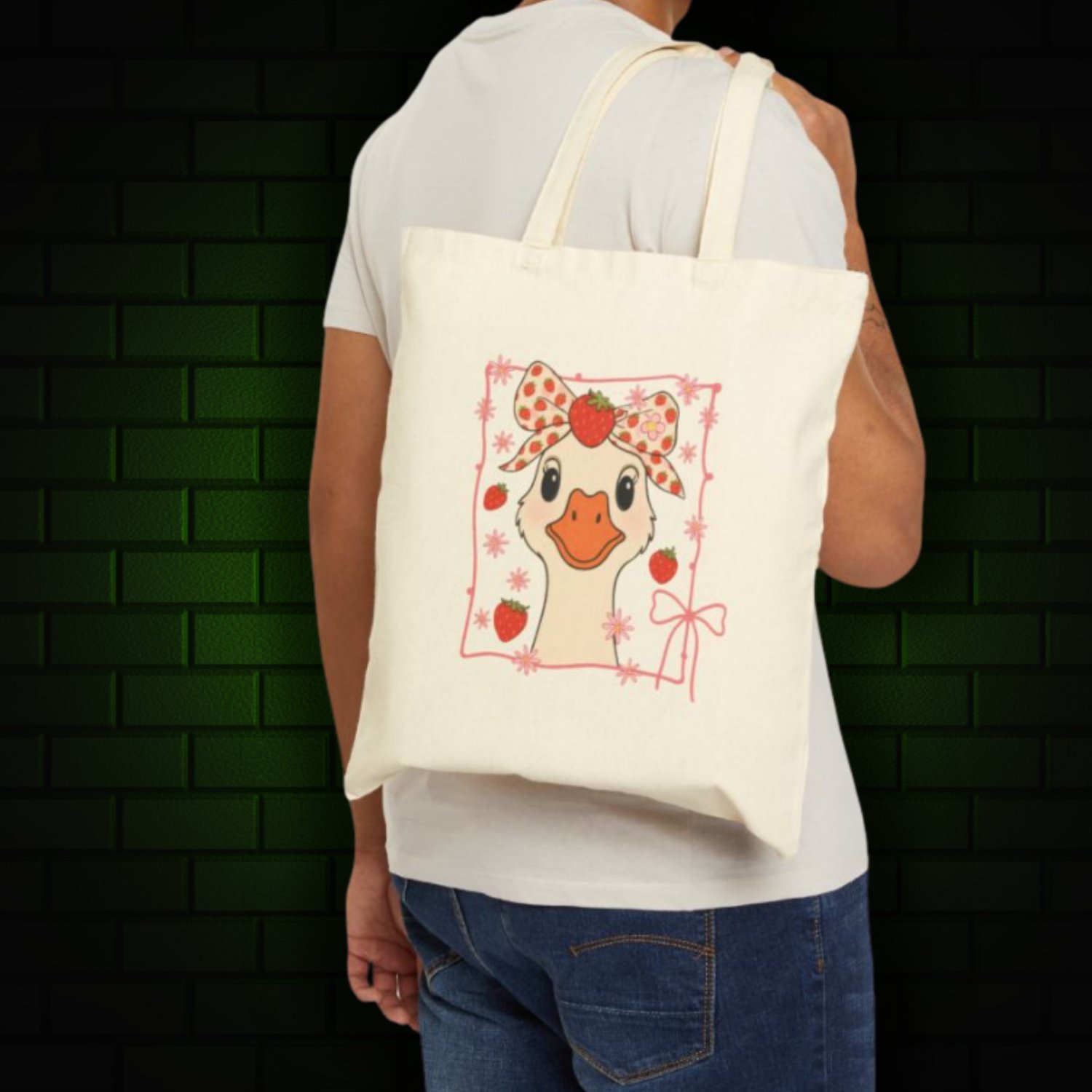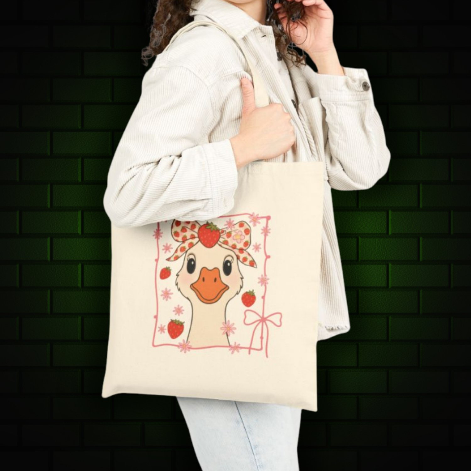 With an adorable bow-wearing goose front and center, this soft aesthetic tote adds charm to your everyday errands. Perfect for carrying books, produce, or your favorite iced latte, it’s lightweight, foldable, and full of personality.