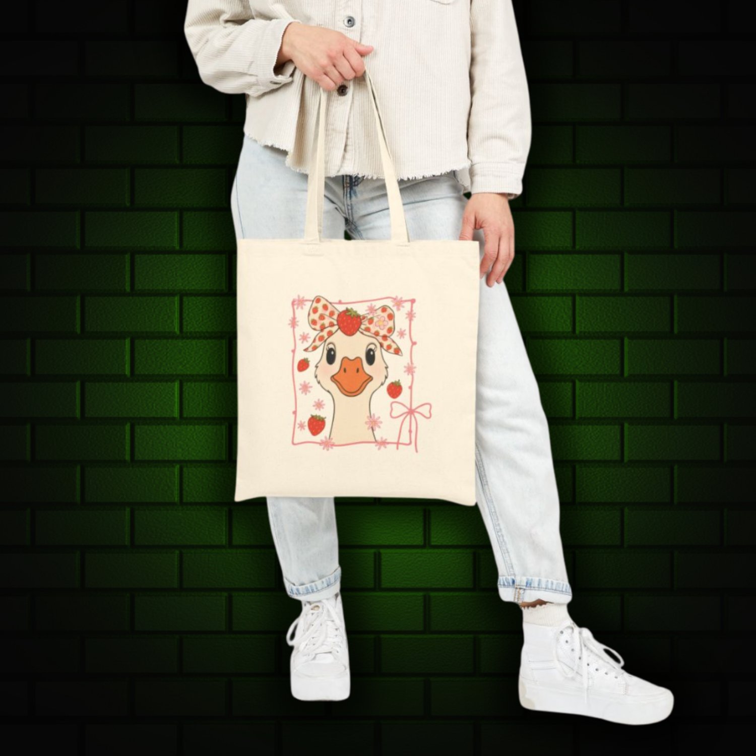 Cottagecore Goose Tote Bag – Coquette Aesthetic Gift, BookTok Girl Vibes, Girly Canvas Market Bag