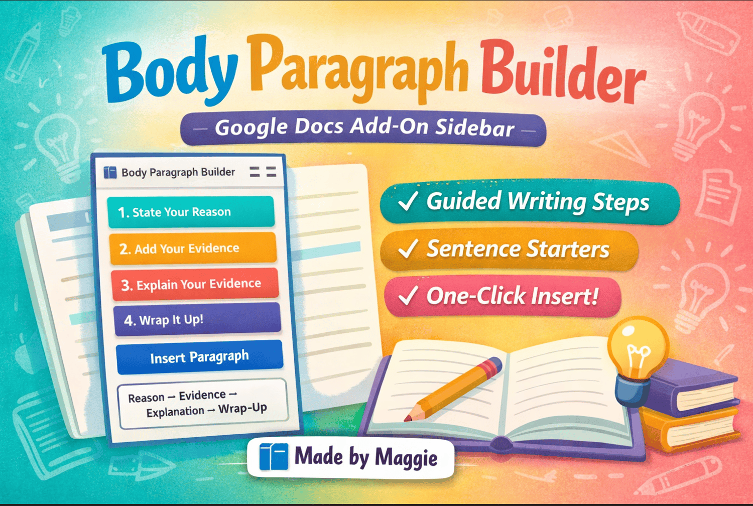 Help your students write clear, evidence-based body paragraphs with confidence! This interactive Body Paragraph Builder walks students step-by-step through crafting a strong argumentative body paragraph — from topic sentence to citation to explanation — all in a student-friendly Google Doc format.