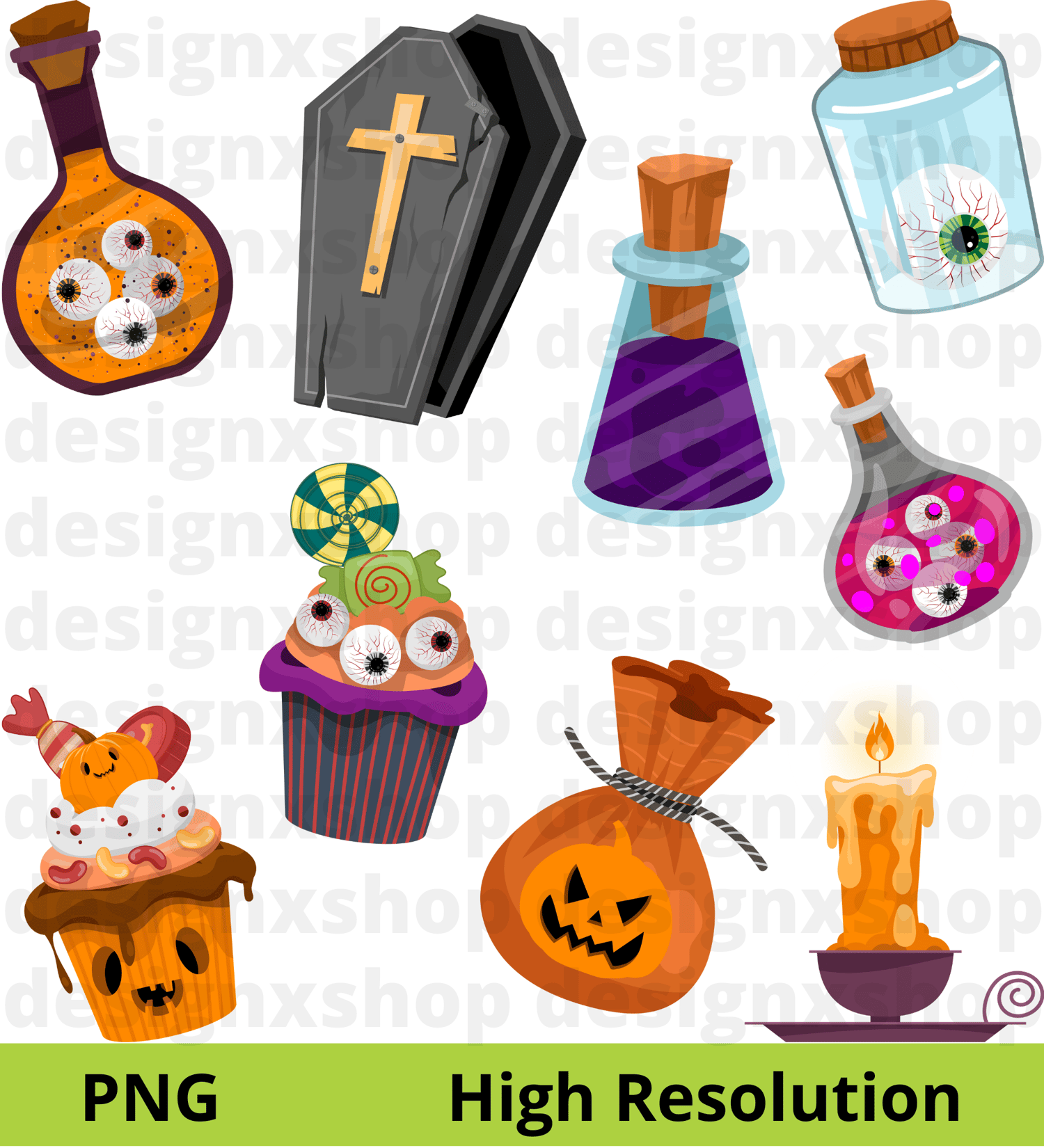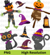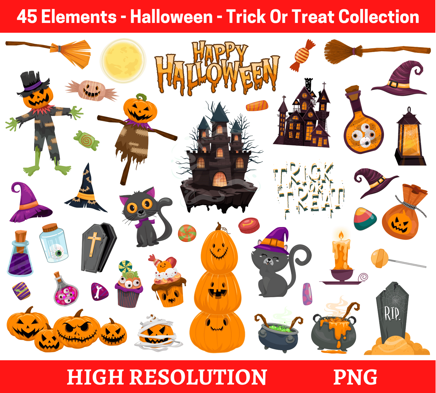 45 Elements - Halloween - Trick Or Treat Collection, hi-res digital CLIP ART (with transparent background).
