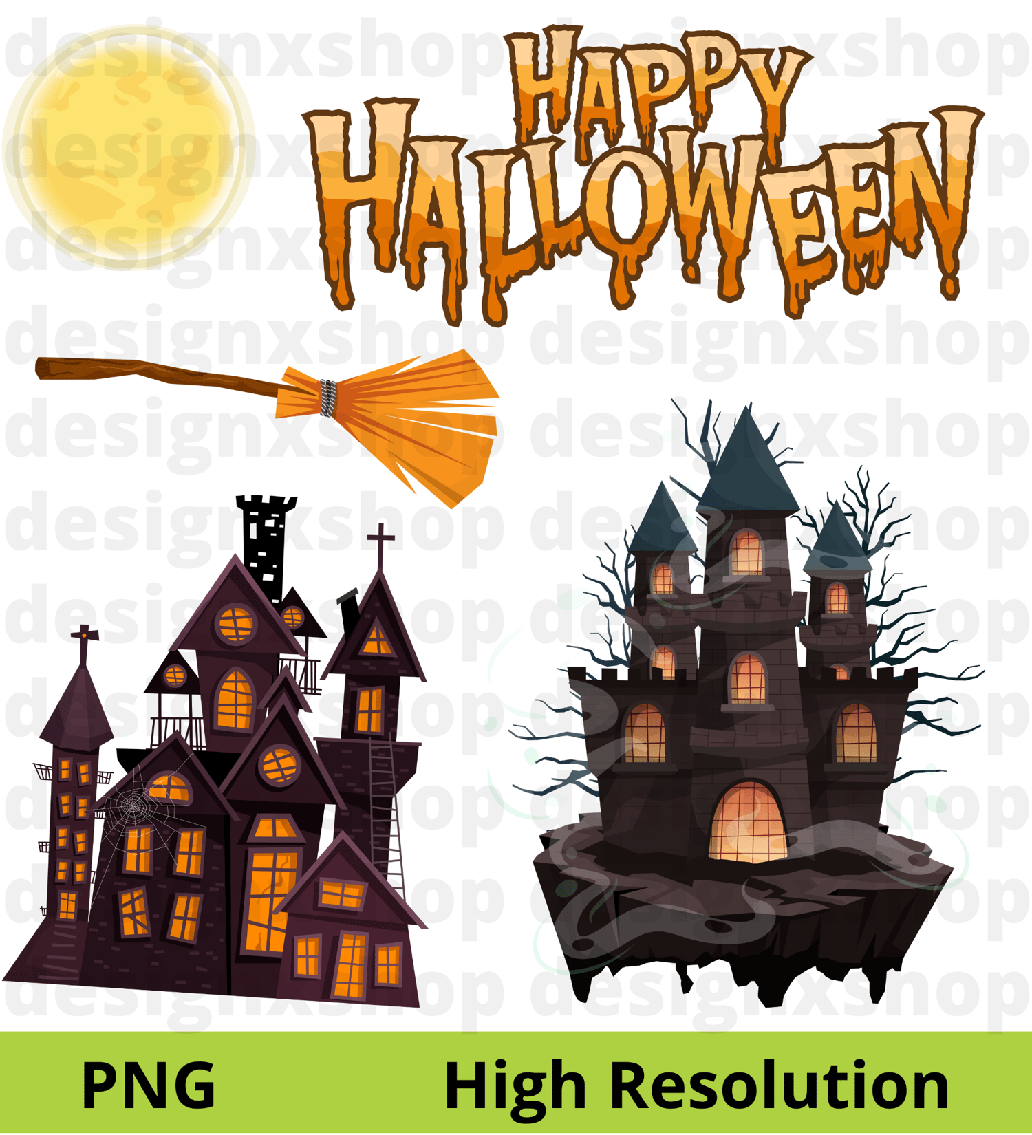 Halloween Clipart: Trick or Treat, Black Cat, Haunted House (SVG & PNG)