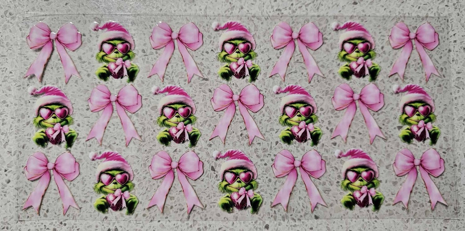 Cute Green Creature Christmas Bow Tumbler Wrap