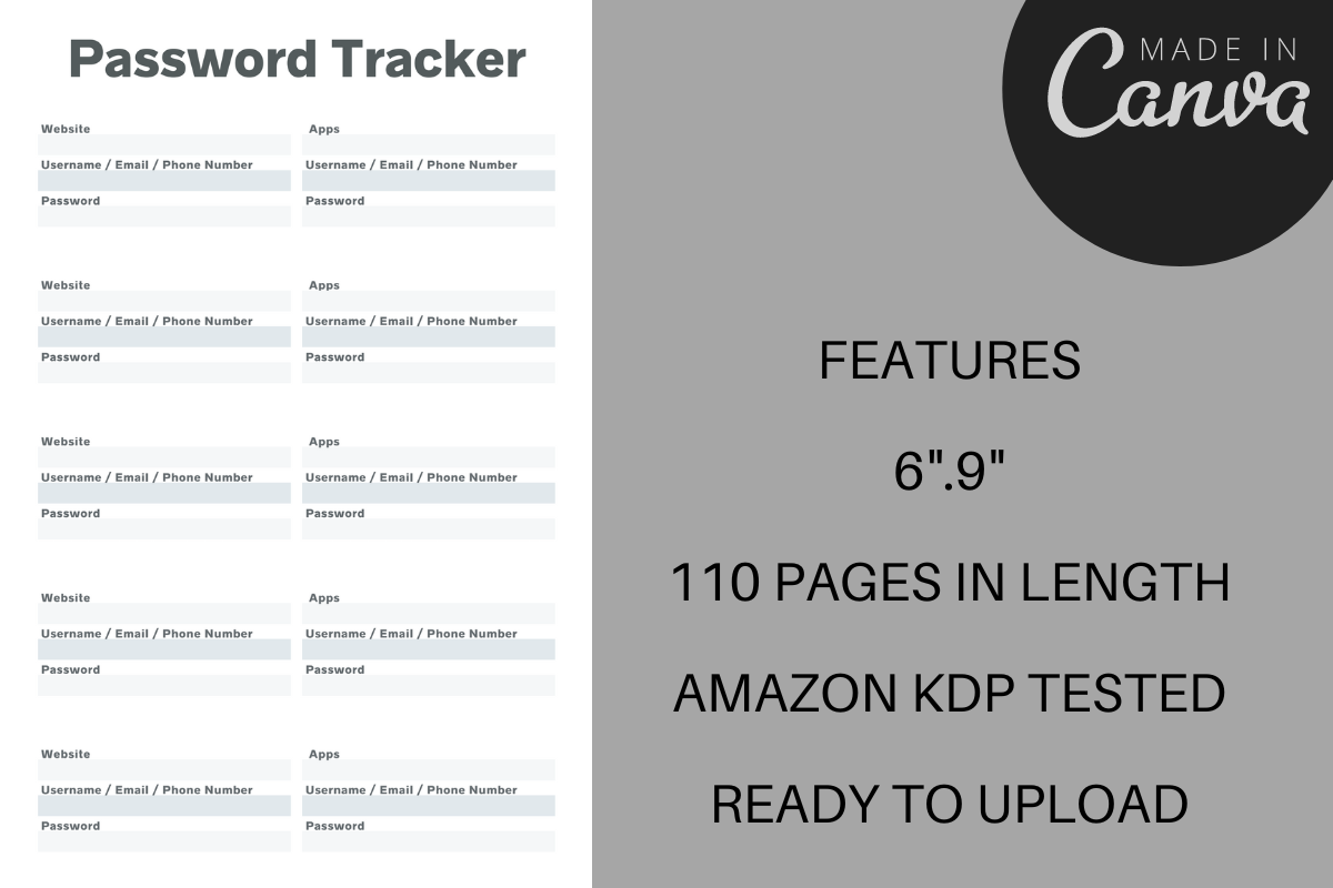 With this interior, you can quickly and easily create a high-quality, professional-looking password tracker for KDP.