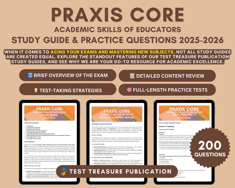 #PraxisPrep #EducationSuccess #TestTreasurePublication
