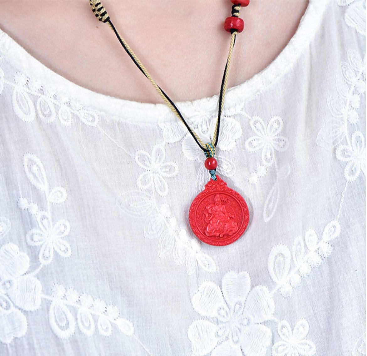 - Vibrant Red Sandstone: The red hue of the pendant represents energy, success, and prosperity, infusing its wearer with a sense of vitality and ambition.