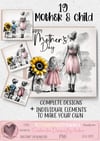 Mother, child, children. 6 readymade designs plus individual clipart to make your own, incl background. 19 PNG files