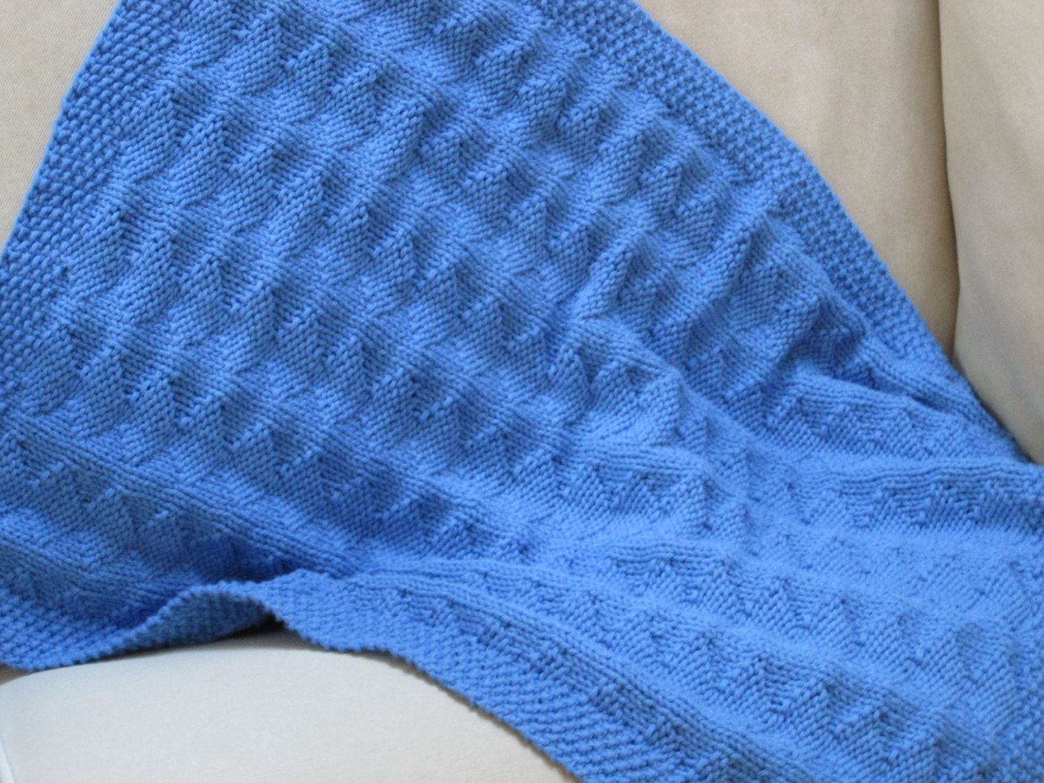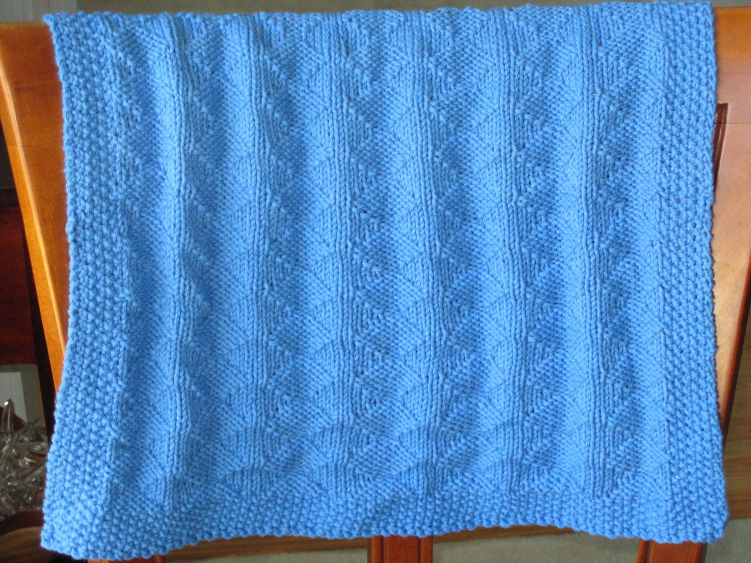 Baby blankets offer such fun opportunities to play with pattern, texture, color, and material. In this case I paired a very boyish blue cotton/acrylic with a diamond motif to create a blanket fit for a younger prince. (In pink, it would be perfect for a princess, too!)