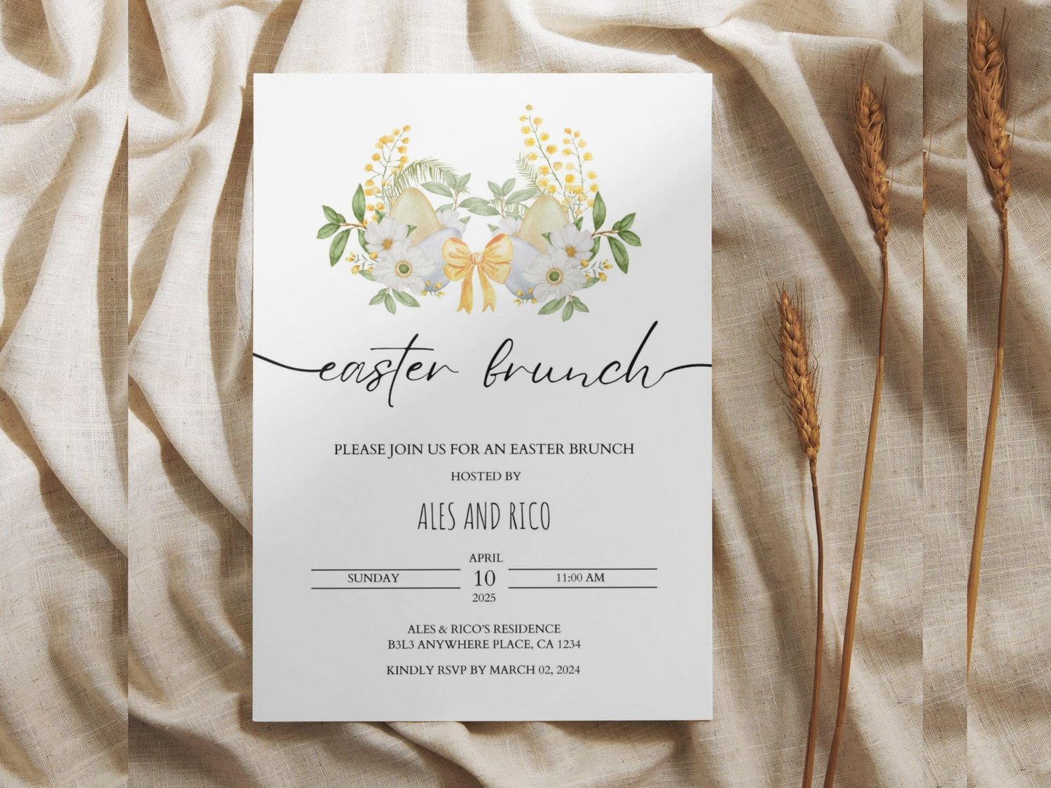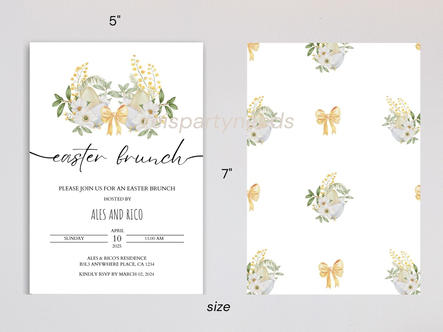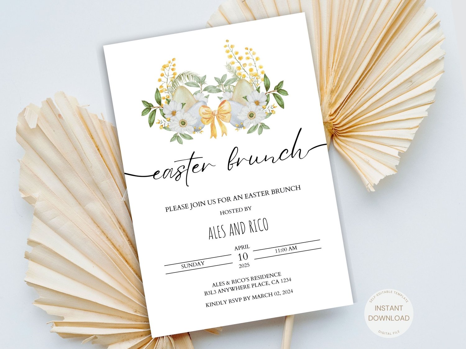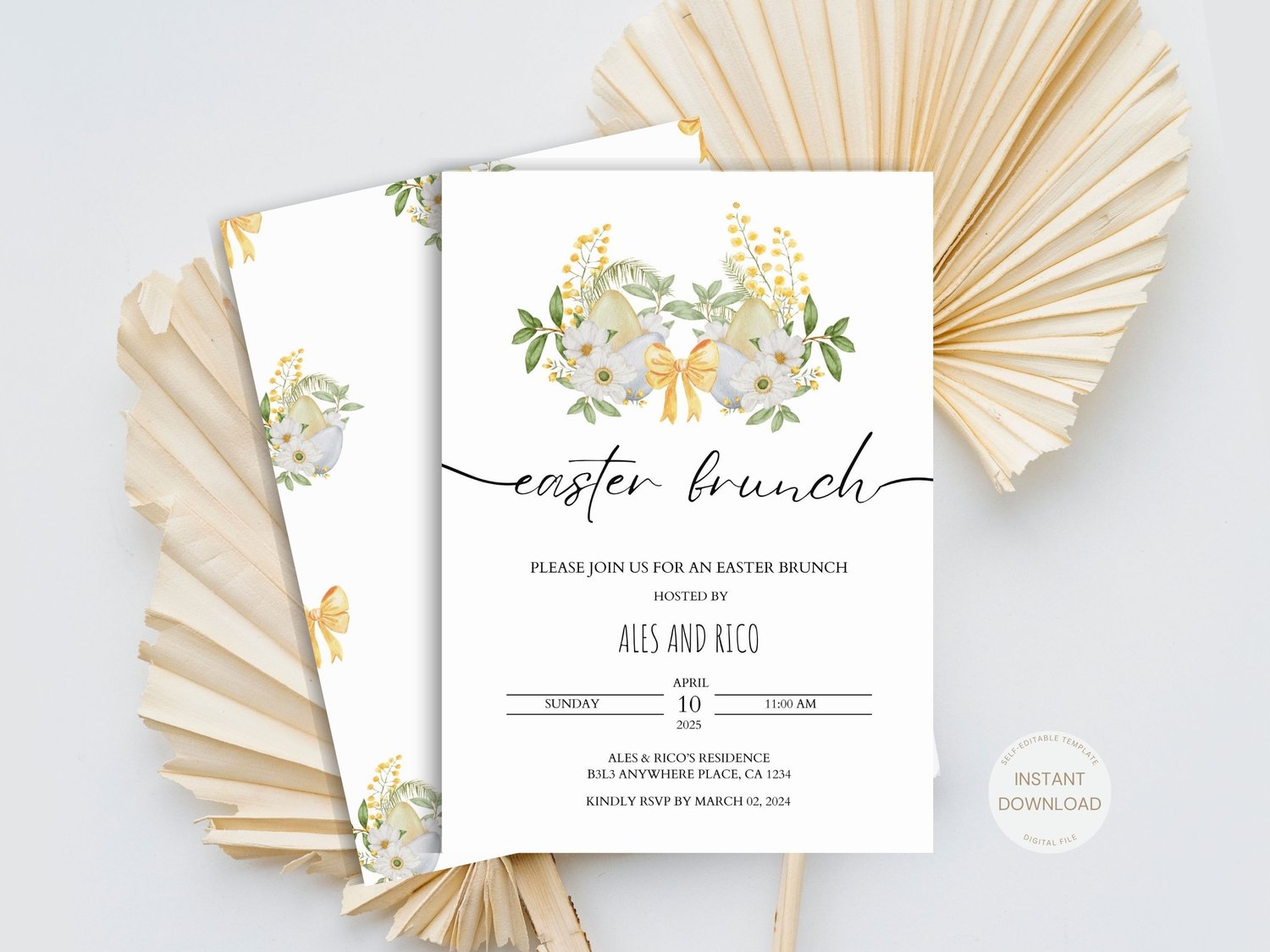 Floral Easter Egg Hunt & Brunch Invitation, Minimalist Easter Invitation Editable Template, Easter Brunch Invitation, Brunch Easter Invites