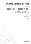 ‘Cysgodion Bywiog’ (‘Living Spirits’) was written in response to Islwyn Ffowc Elis’s novel ‘Wythnos yng Nghymru Fydd’ (1957). The work takes fragments from Welsh folk songs and reimagines them through the lens of memory, of a language in danger of being lost, and a nation with a deep connection to music and song.