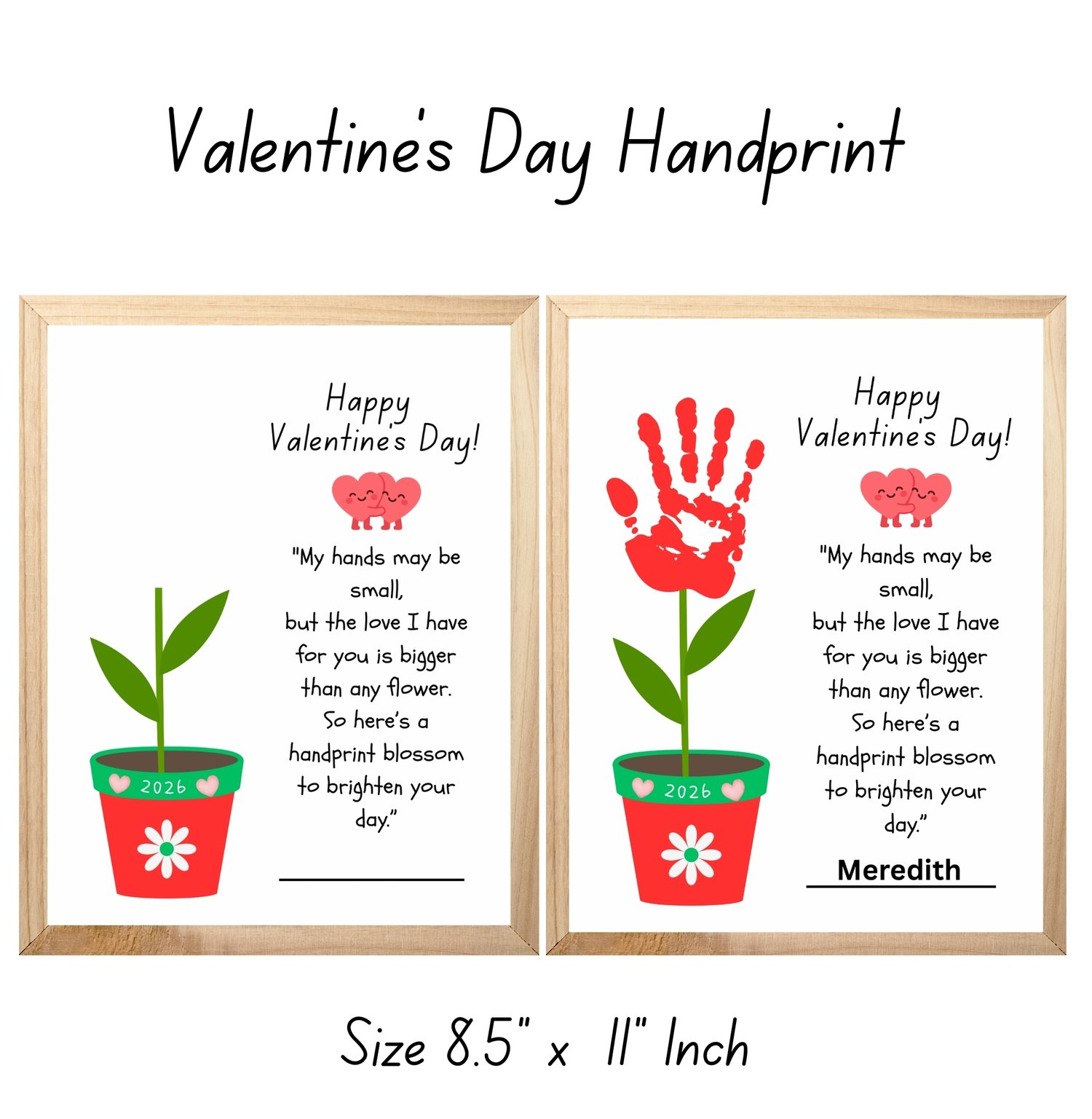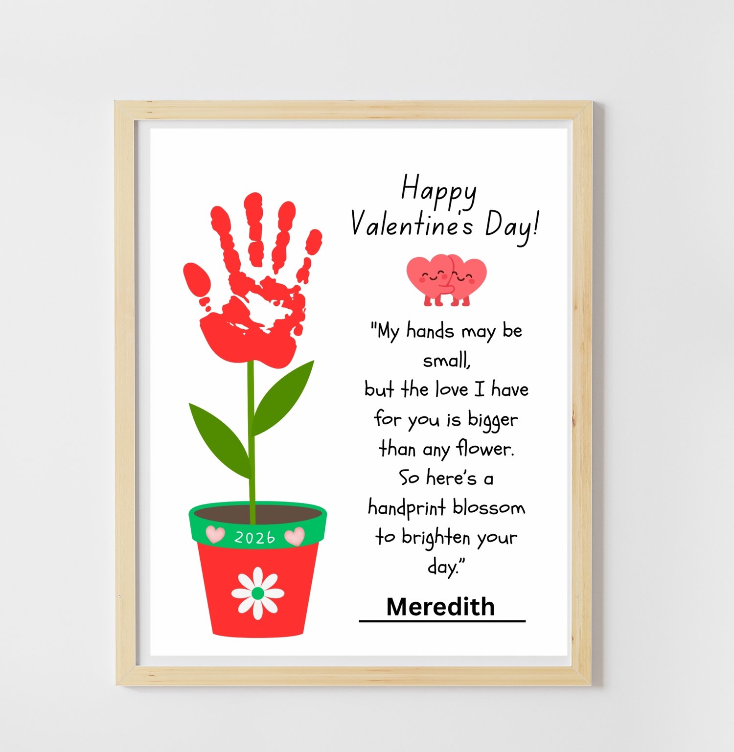 This ready-to-print template includes a cute Valentine’s message and space for your child’s handprint, making it a beautiful memory to treasure for years.