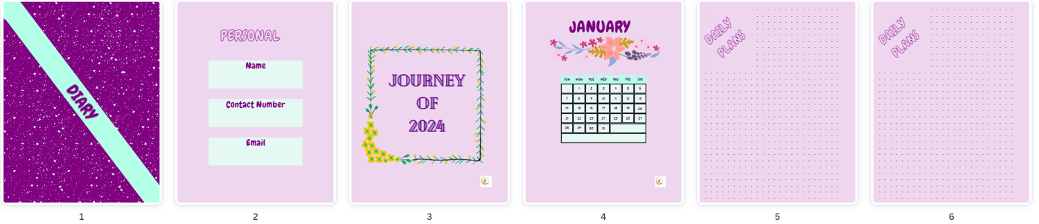 You'll get pdf digital printables Include Front Cover Page, Personal Information Page,12 Monthly Overview Pages, Weekly 2 Pages per Month /Daily 24 dotted Pages, Goal Setting Pages (April, August, Dec) , Notes Pages, 7 Dotted Pages, Back Cover.