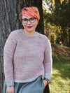 The body is worked in Pearl Brioche stitch, the shoulders/sleeves are worked in Garter stitch and the Raglan lines and sides are worked in Brioche stitch.