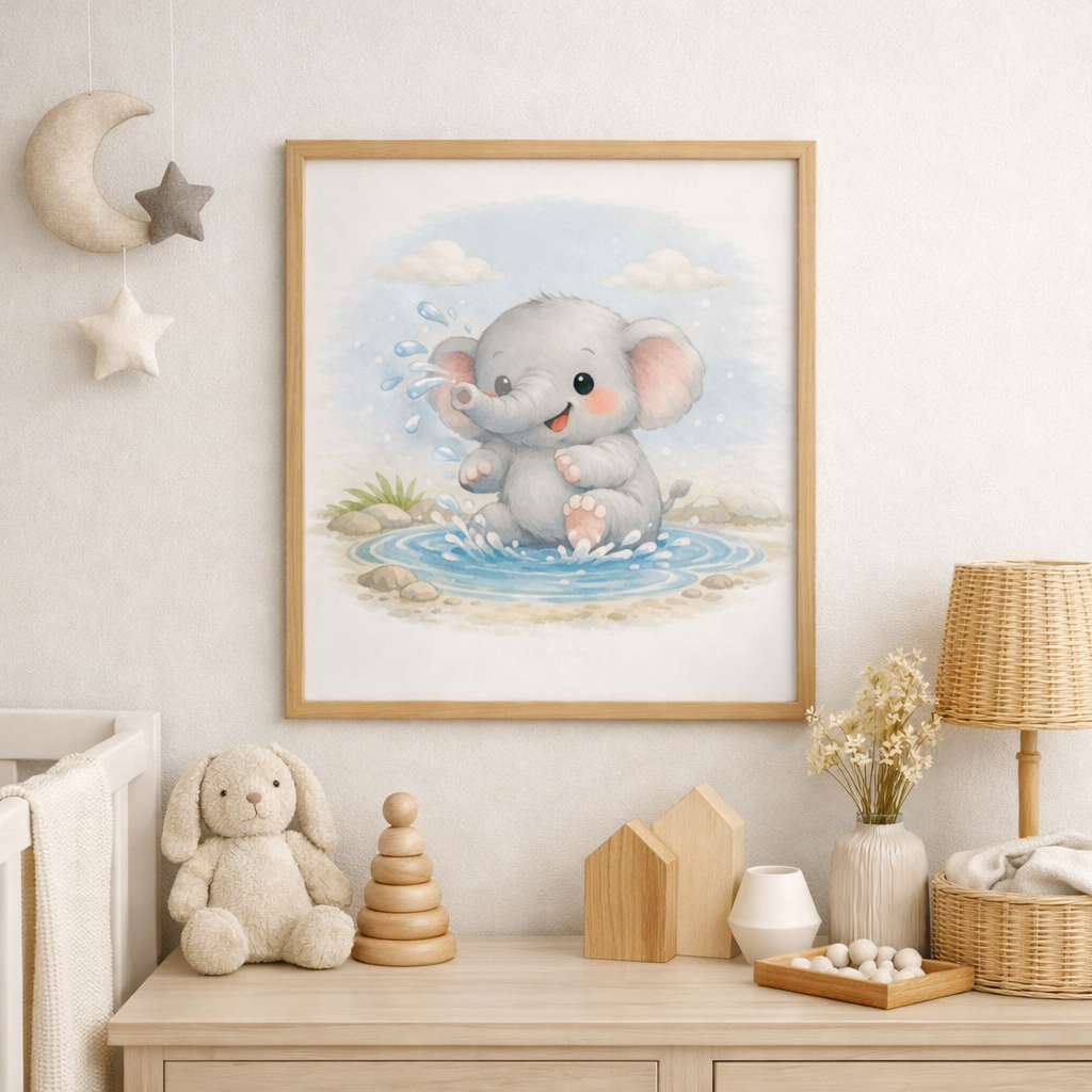Bring calm, modern magic into your nursery, kids’ room, classroom, or family space with this painterly printable wall art featuring a gentle elephant from the Creatures of the Land & Lake collection. Designed with softness and intention, this artwork adds warmth, comfort, and quiet wonder to any environment.