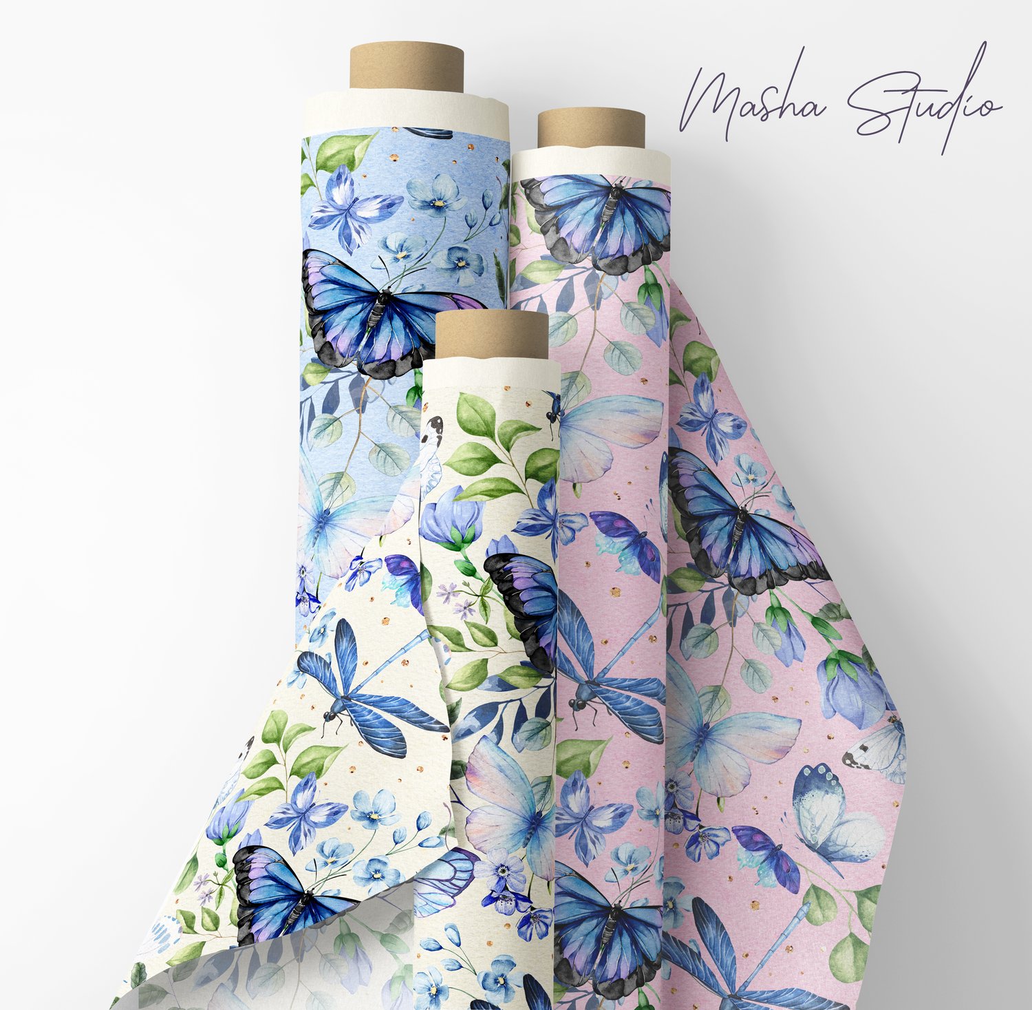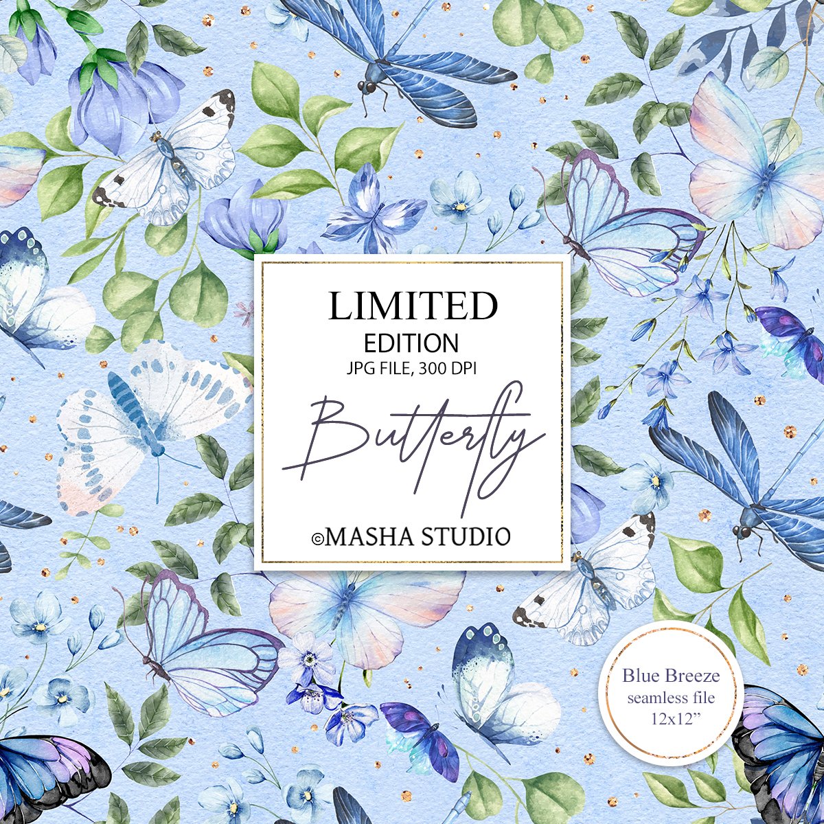 Hand Drawn Blue Breeze Butterfly Seamless Digital Paper