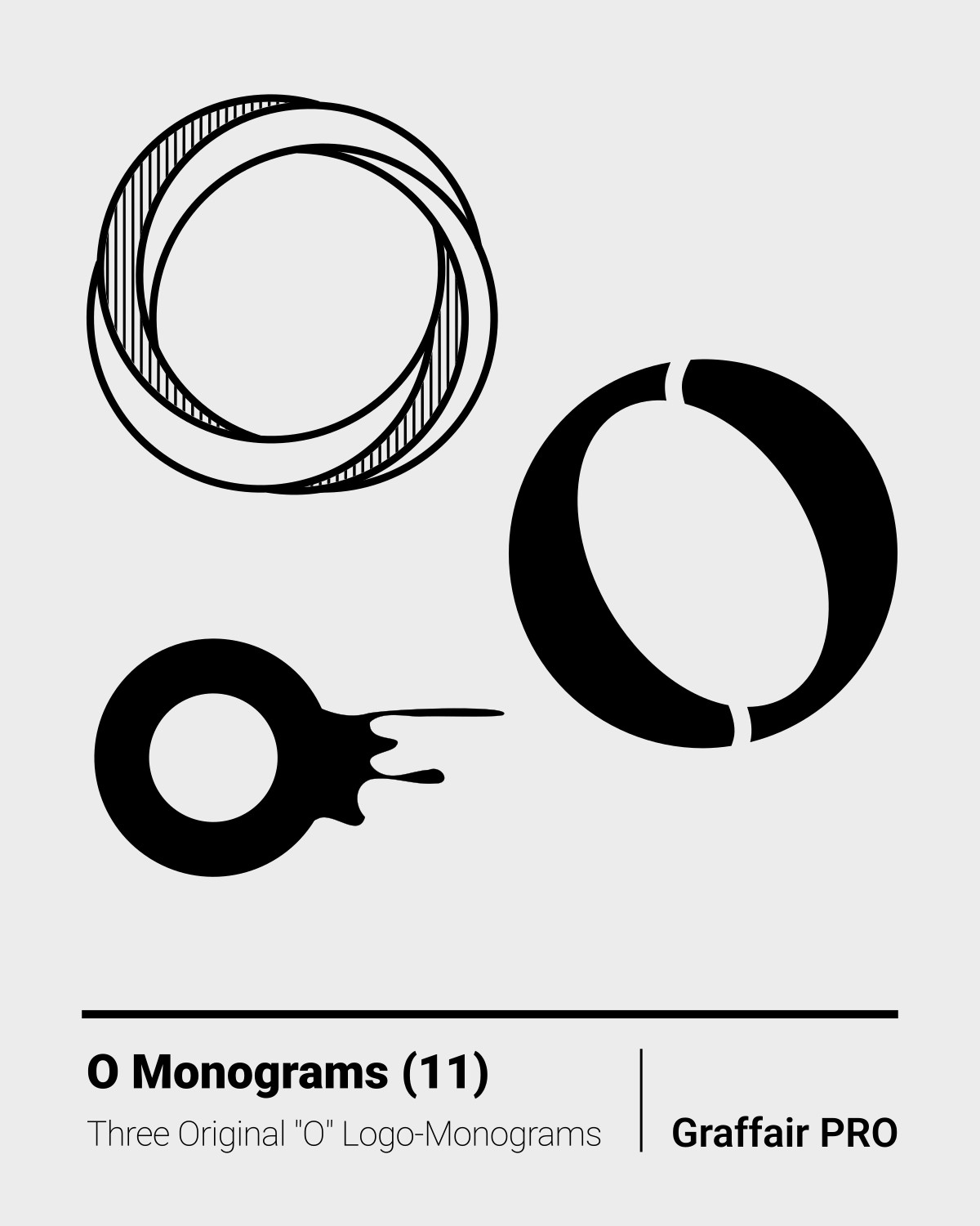 O Monograms (11): The 11th set of three original "O" logo monograms, included in the "1050 SVG Monograms" super bundle, which also features an Index catalog.