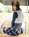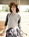 Chelsea Waistcoat/Wrap consists of three pieces, a fitted back piece with a rib at the lower edge and moss stitch detail at armholes and two triangular front pieces. The front pieces are mirror image of each other. There are few seams; centre neck, shoulders and side seams only. The triangular pieces fasten at centre back using press studs.This knitting pattern includes schematics, measurements and fully written instructions.
