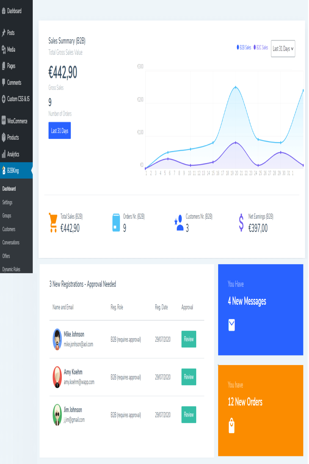 B2BKing is the complete solution for running a Wholesale, B2B, hybrid B2B+B2C, or Private Membership store with WooCommerce.