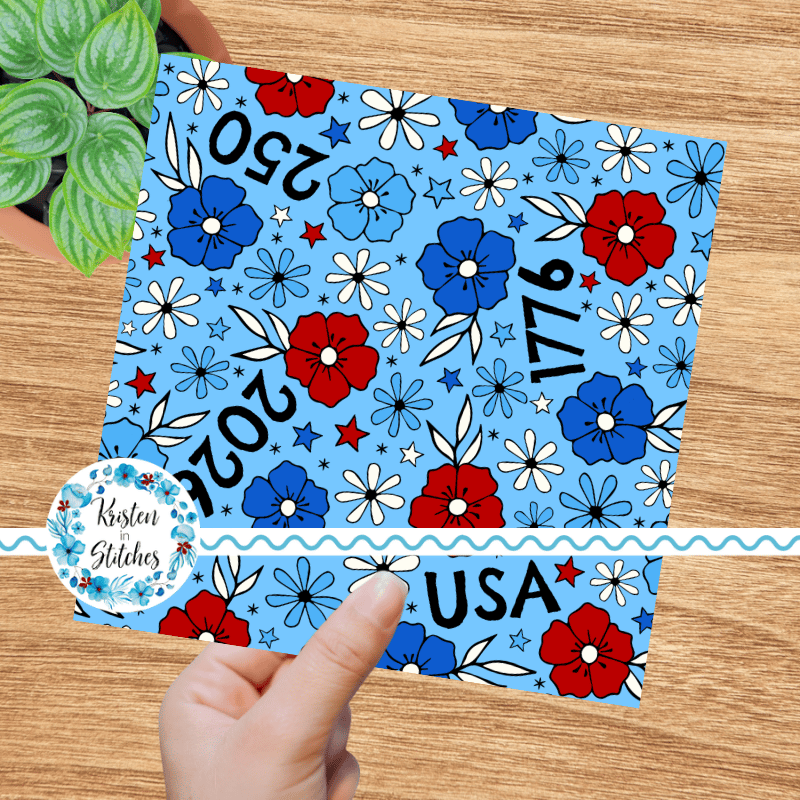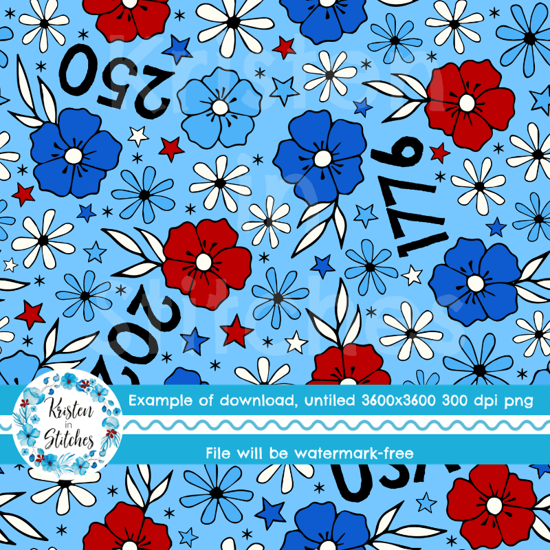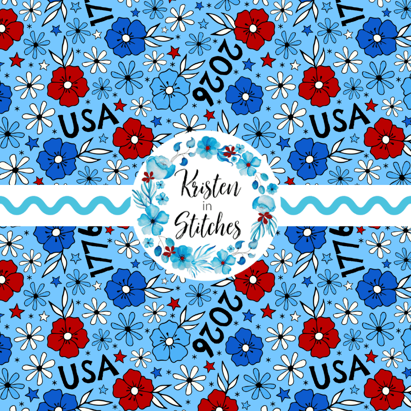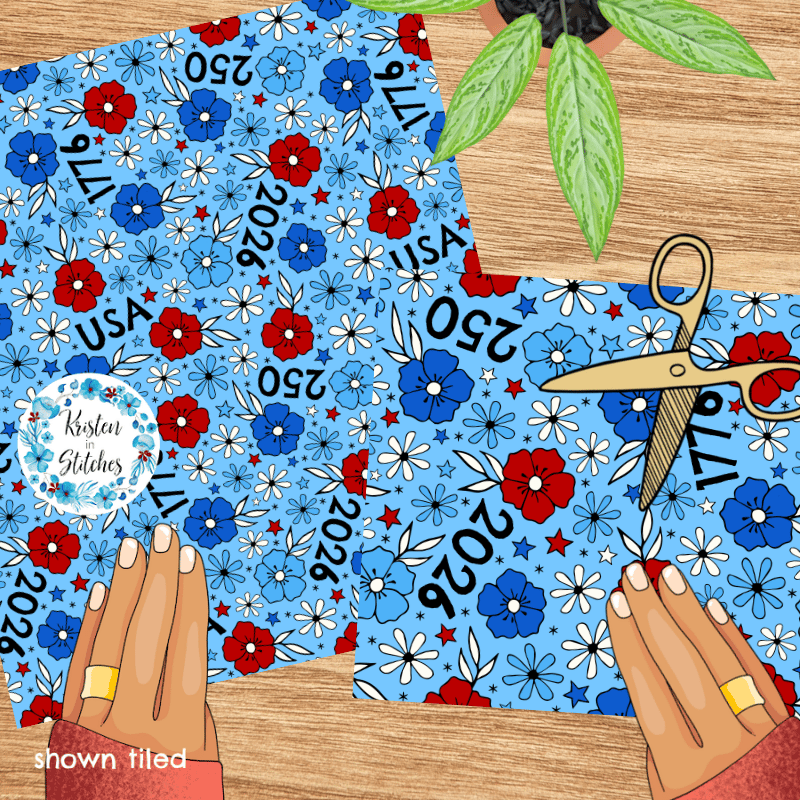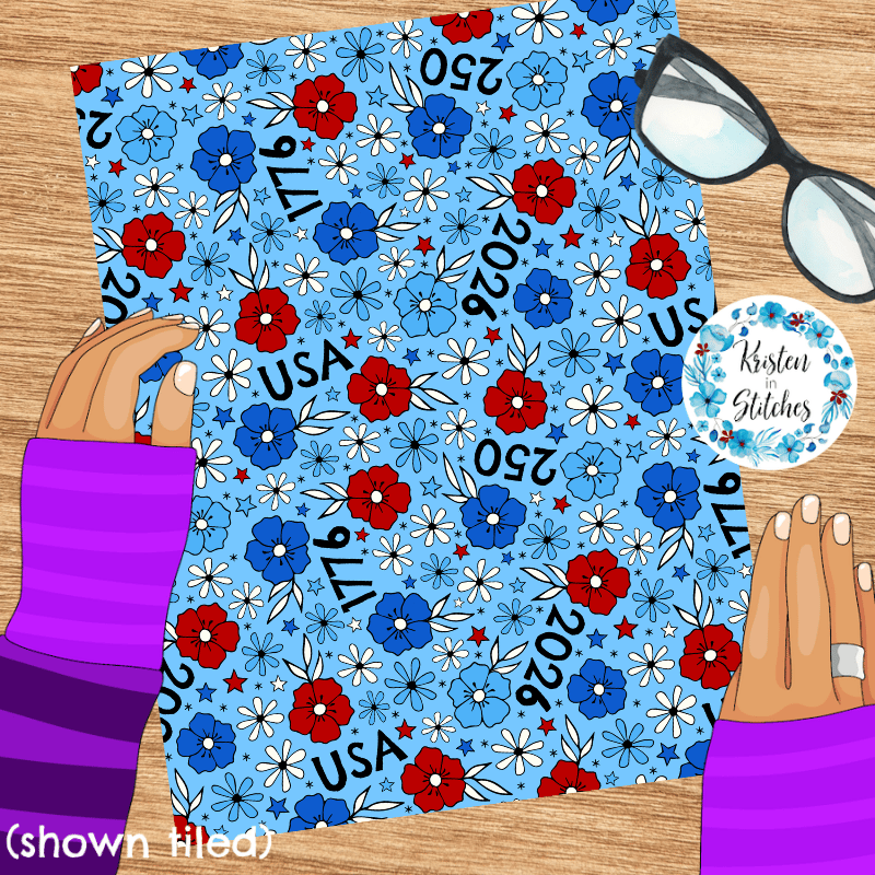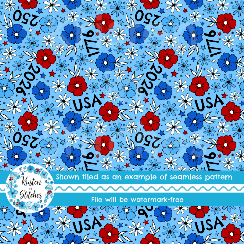 Patriotic USA 250th Floral Seamless Pattern, Red White Blue 1776 2026