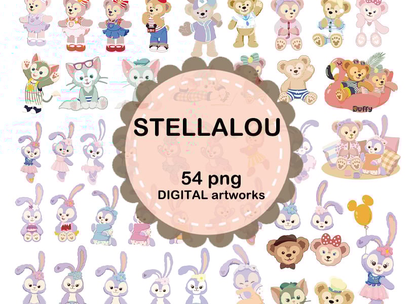 Bring the adorable world of Stellalou & Friends Disney to your digital space with this high - resolution collection of 54 high-quality PNG Artwork ! Featuring everyone's favorite Stellalou & Friends from Disney this pack is perfect for printing on bags , tees and etc , or decorating your planners, journals, or creative projects with endless cuteness.