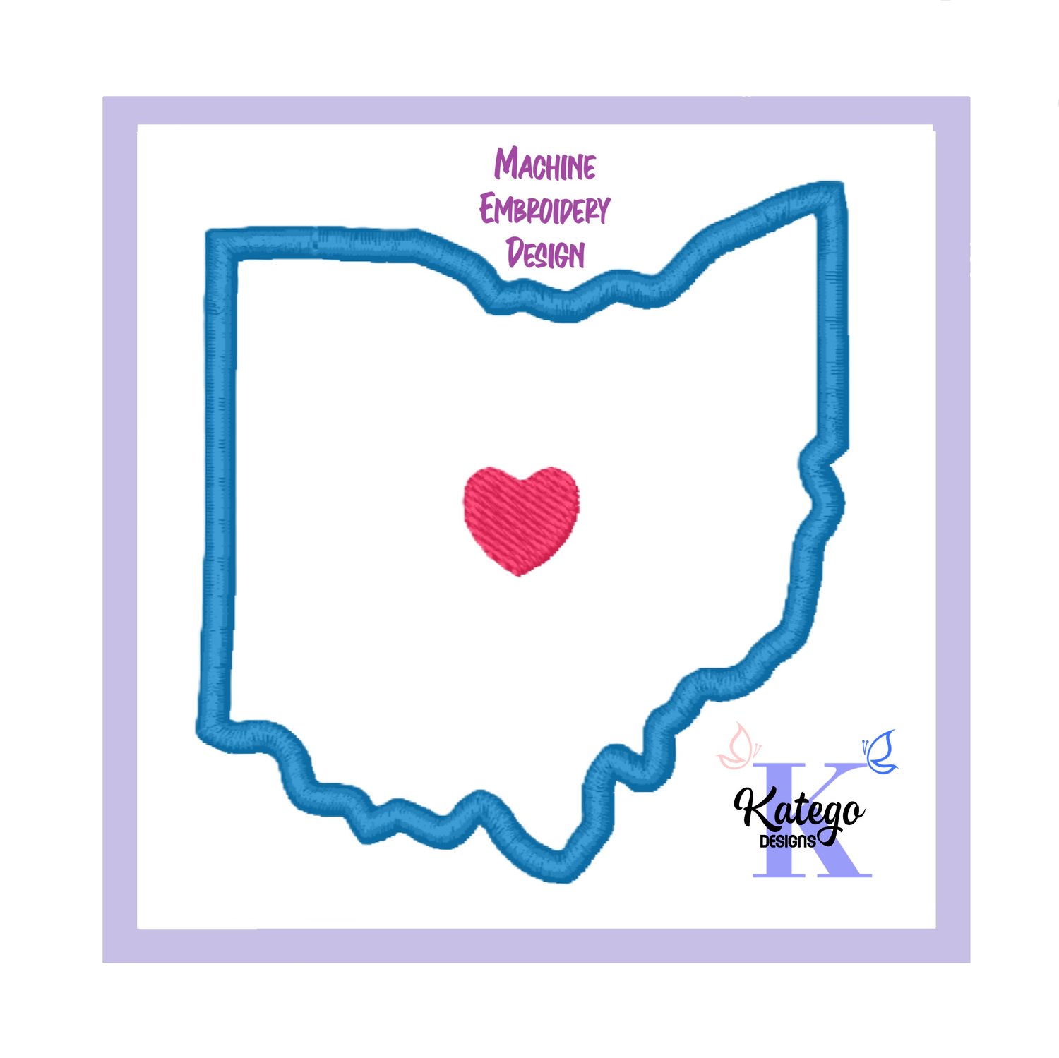 Love Ohio State Satin Outline Embroidery Machine Embroidery Designs Embroidery USA State Outline Design for Embroidery Machine PES Design