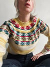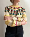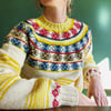 Irregular stripes on the body, intersected with Fair Isle motifs at the yoke, give this simple yoked sweater an unusual look.