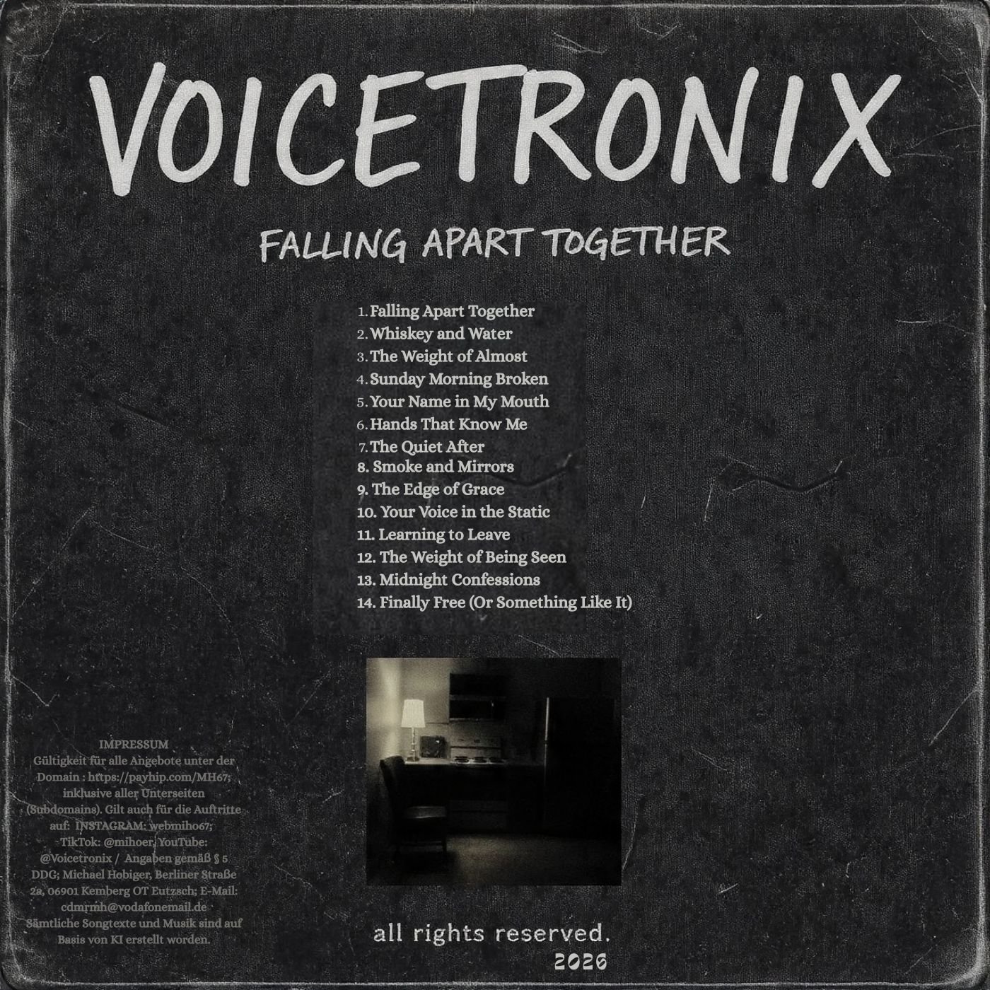 Hier sind 14 Songs, die weiterreden. Von Werkstätten, die nicht mehr existieren. Von Händen, die uns kennen. Von Stimmen, die durch das Rauschen kommen. Von der Freiheit, die anfängt, wenn wir aufhören, zu performen.
