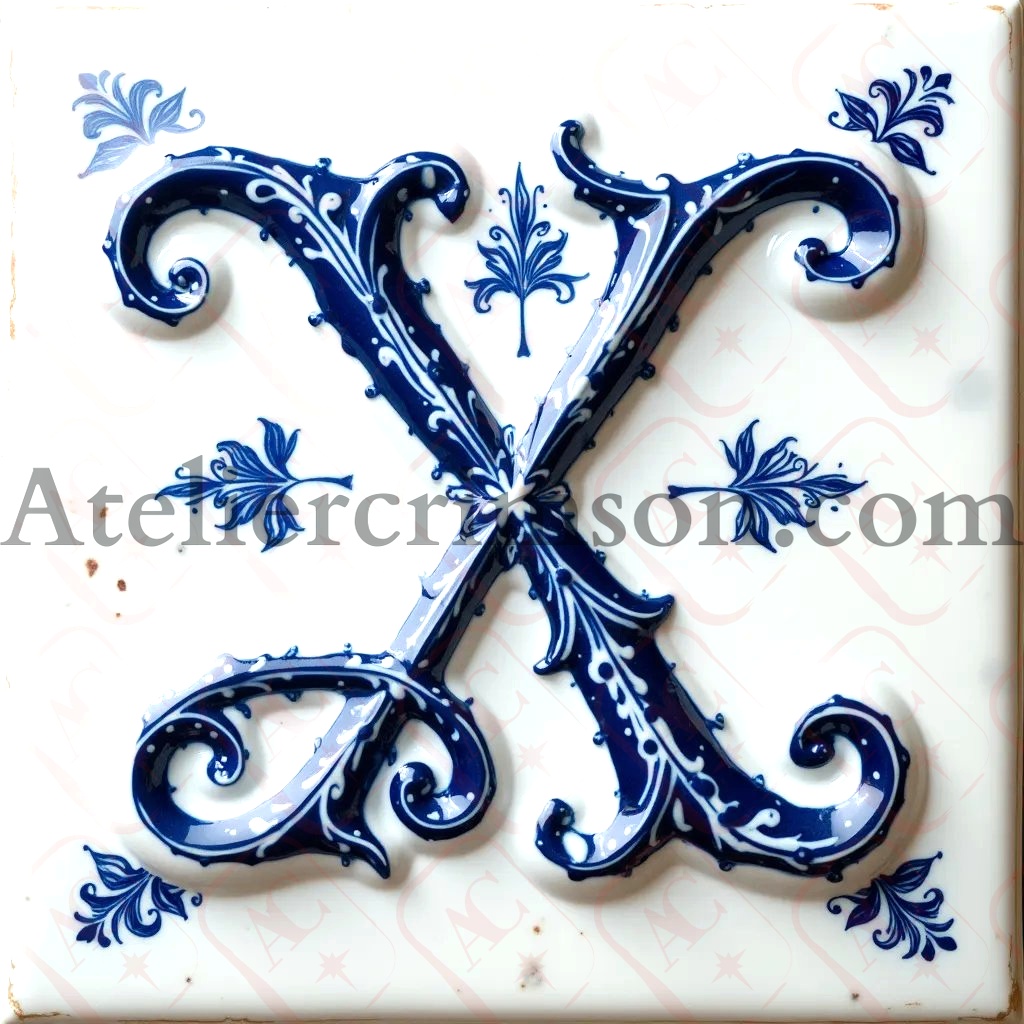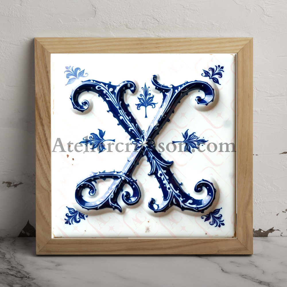 The letter X delftware blue tiles Download Now this high quality AI-generated image, perfect for adding a touch of tranquility and creativity to any space.