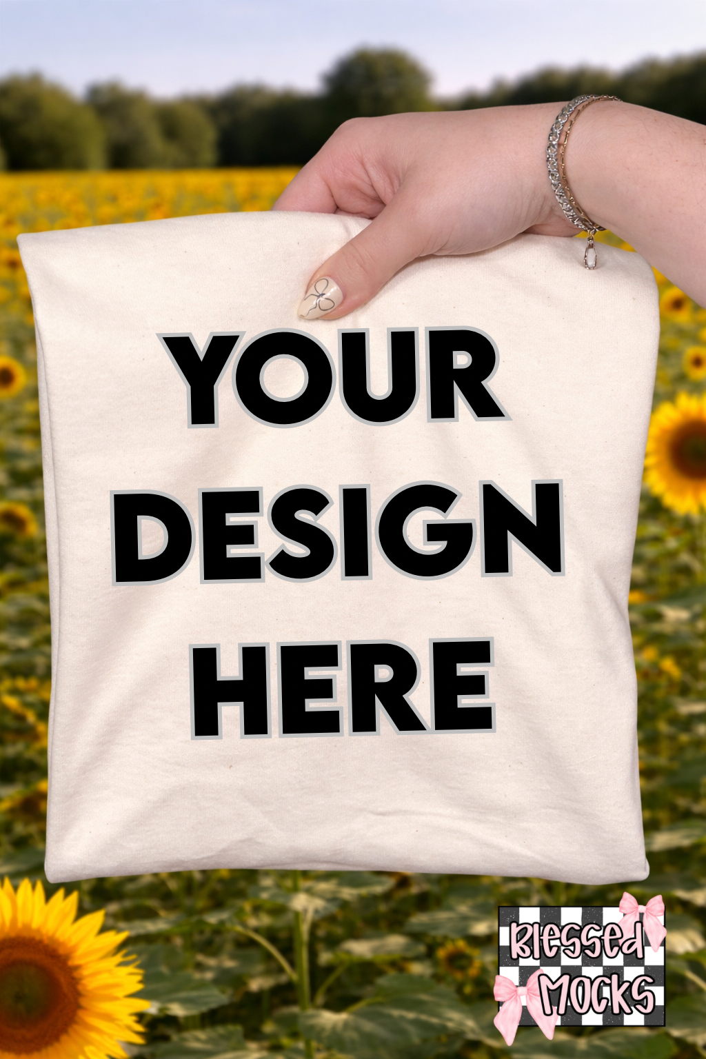 White sunflower field T-shirt mockup