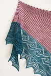 Please note finished size will vary greatly depending on gauge, how many pattern repeats you knit, and how extensively the shawl is blocked. Total Yarn used for sample shown was approximately 85 grams (360m/394yds) for the Lace edging and 45 grams of each of the two colours (192m/210yds) for the Main Body & approximately 90 grams (384m/420yds) total if you are using a single colour.