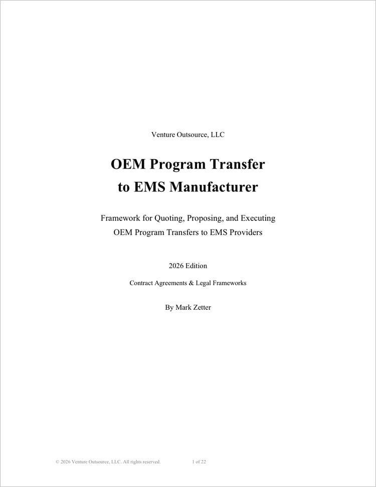 A comprehensive OEM-EMS contract framework for general electronics manufacturing programs. 32 pages.