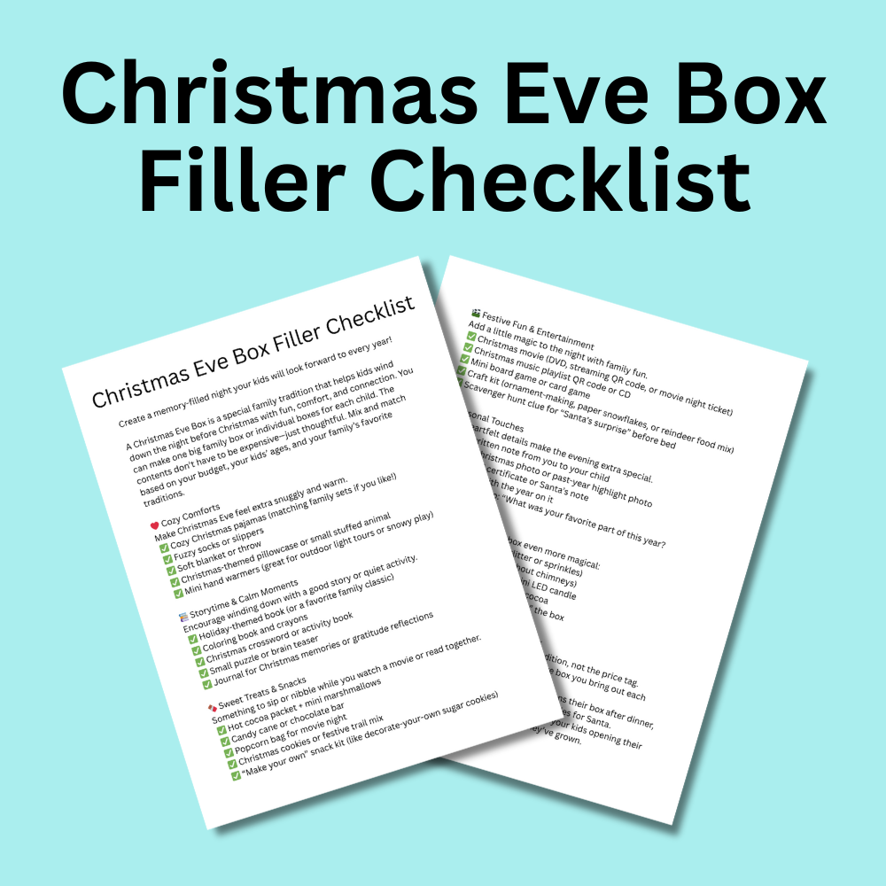 If you want to do Christmas Eve Boxes for your kids, but need some help with planning them, download the Christmas Eve Box Filler Checklist!