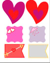 Printable Valentine Heart Set - Gift Tags, Stickers, Labels, Scrapbook, Decorations